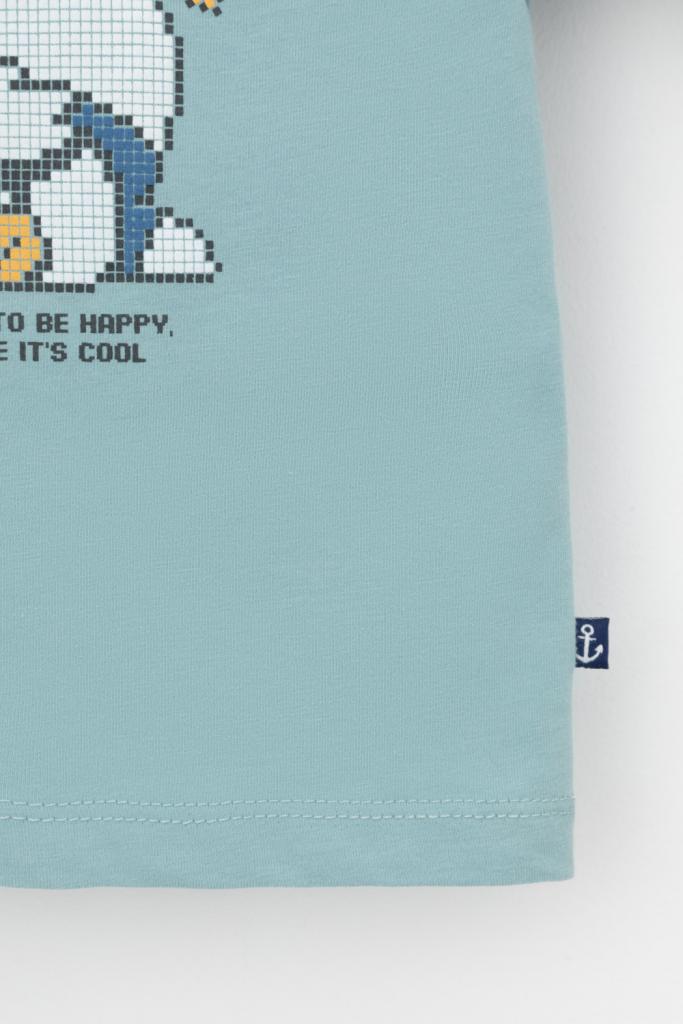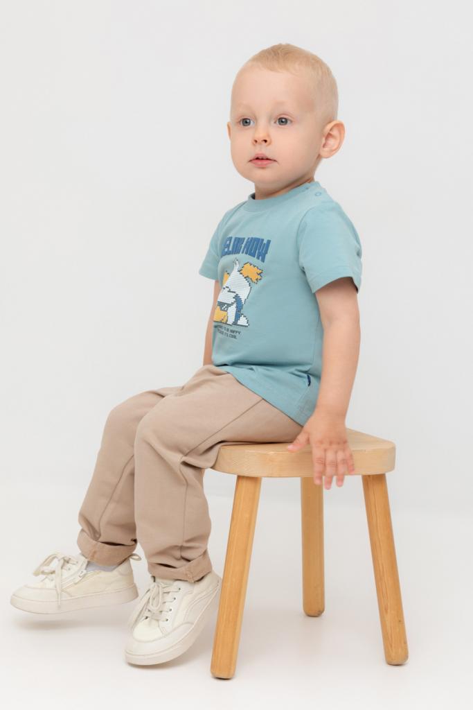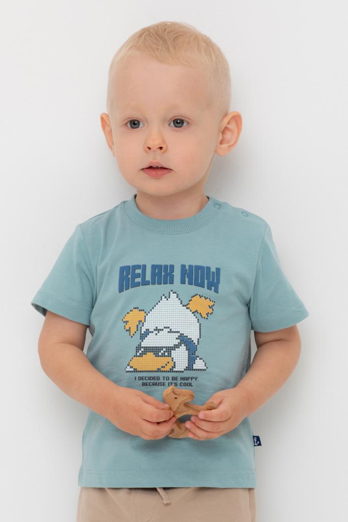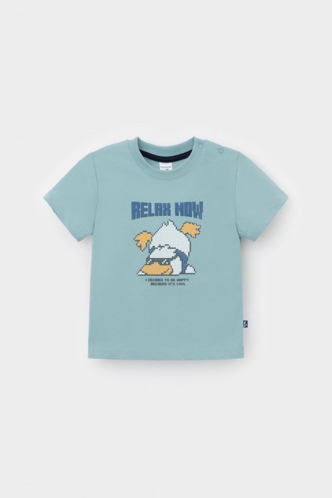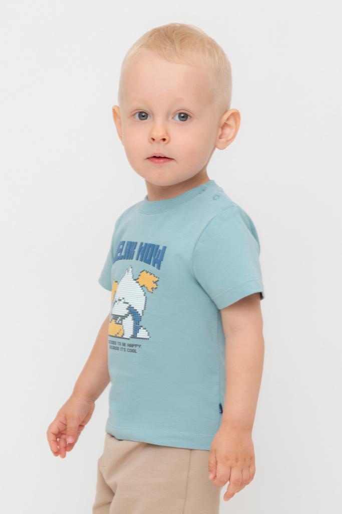 Футболка для мальчика из высококачественного трикотажного полотна. Оригинальный принт выполнен из стойких текстильных красителей. Для удобства на плече застежка на кнопки.