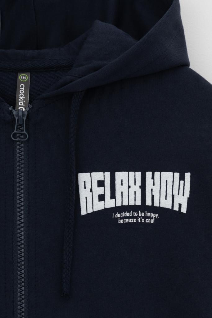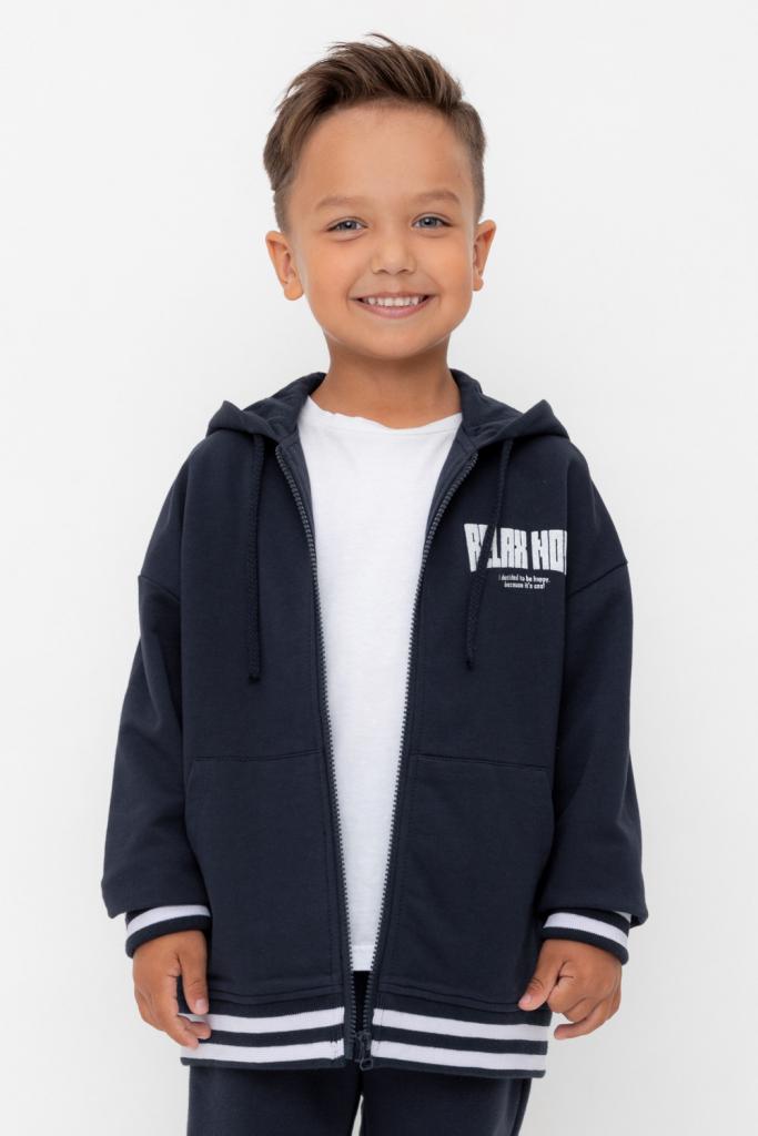 Толстовка с капюшоном для мальчика из мягкого трикотажа. В составе 80% натурального хлопка и 20% полиэстера, при этом полиэстер ввязан внутрь по особой технологии и не соприкасается с кожей. Воротник, манжеты и пояс - вязаные. Спереди два удобных накладных кармана.