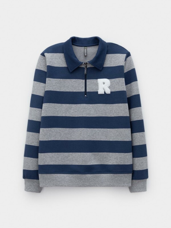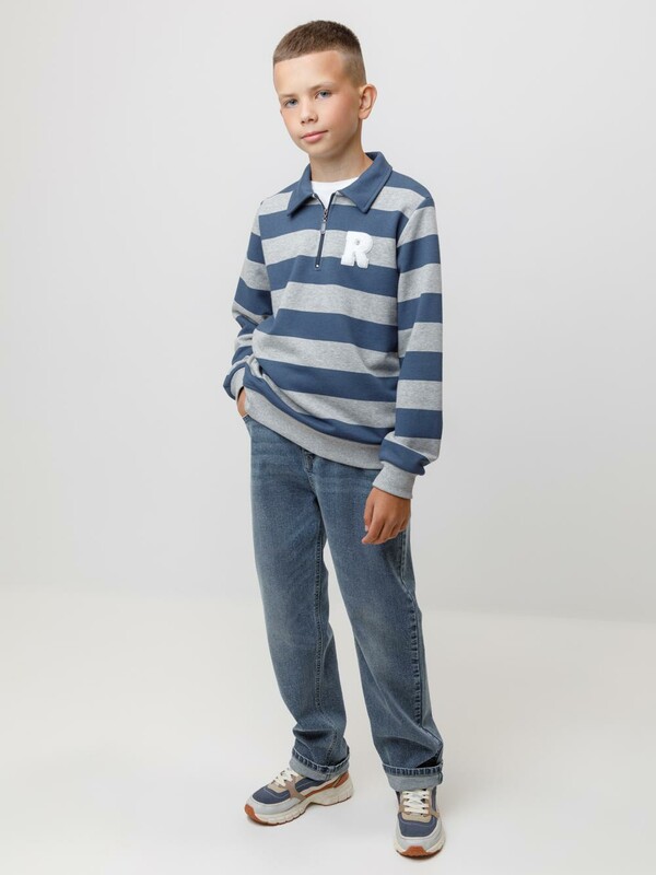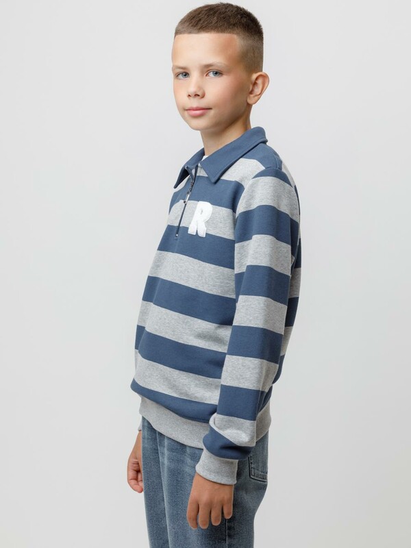 КР 302795/серый меланж,синий,полоска к618 джемпер (свитшот)
