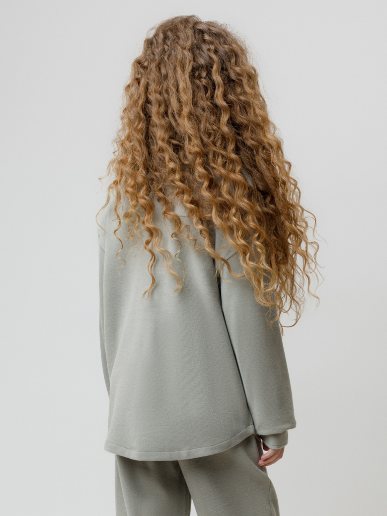 Рубашка свободного кроя для девочки из мягкого трикотажа селаник с peach эффектом. Peach эффект достигается с помощью технологии обработки полотна, при которой на его поверхности создаётся лёгкий ворс, напоминающий нежную текстуру кожи персика. Модель с закруглённым низом и спущенным плечом. Застёгивается на пуговицы. Изделие сохраняет цвет и форму после многократных стирок. Все трикотажные полотна производятся в соответствии с нормами швейцарского сертификата ЭкоТекс.