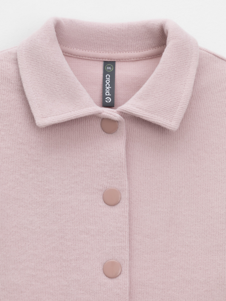 Рубашка свободного кроя для девочки из мягкого трикотажа селаник с peach эффектом. Peach эффект достигается с помощью технологии обработки полотна, при которой на его поверхности создаётся лёгкий ворс, напоминающий нежную текстуру кожи персика. Модель с закруглённым низом и спущенным плечом. Застёгивается на пуговицы. Изделие сохраняет цвет и форму после многократных стирок. Все трикотажные полотна производятся в соответствии с нормами швейцарского сертификата ЭкоТекс.