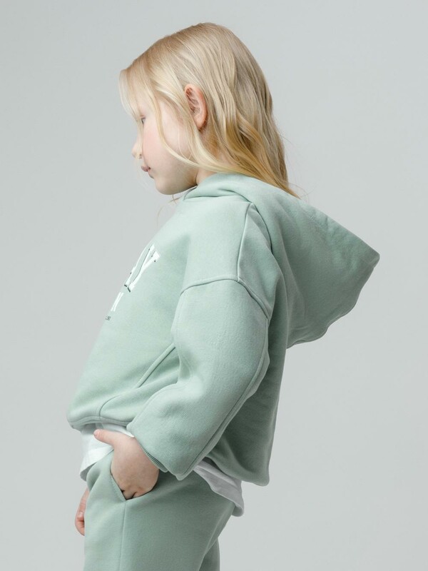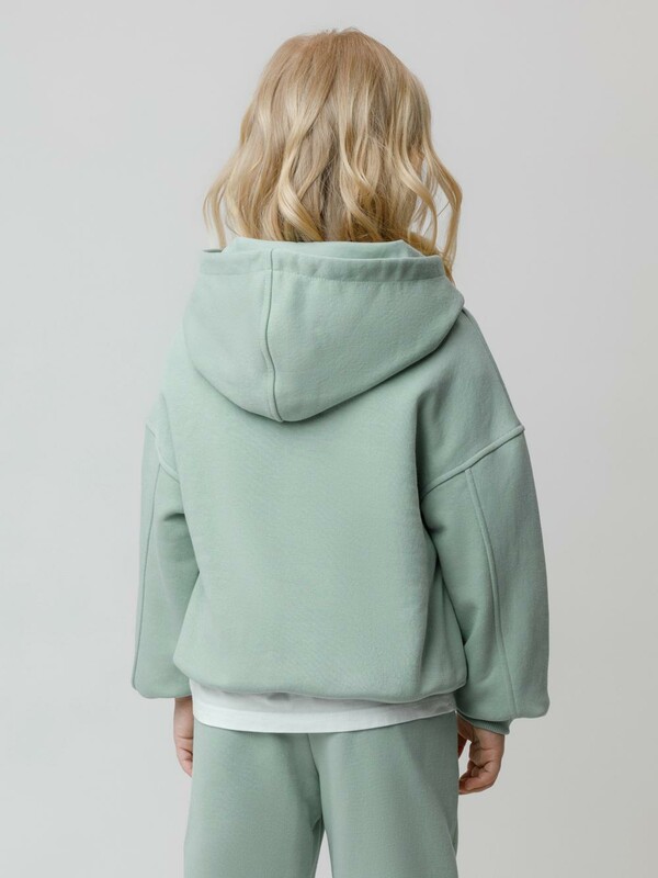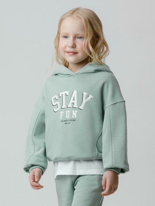 Худи с капюшоном для девочки из тёплого футера с начёсом. Модель оверсайз. Пояс и манжеты выполнены из мягкого эластичного трикотажа. Худи сохраняет форму и стойкий цвет после многочисленных стирок и идеально подходит на каждый день. Оригинальный принт выполнен из стойких текстильных гипоаллергенных красителей. Все трикотажные полотна производятся в соответствии с нормами швейцарского сертификата ЭкоТекс.