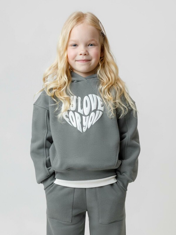 Худи с капюшоном для девочки из тёплого футера с начёсом. Модель оверсайз. Пояс и манжеты выполнены из мягкого эластичного трикотажа. Худи сохраняет форму и стойкий цвет после многочисленных стирок и идеально подходит на каждый день. Оригинальный принт выполнен из стойких текстильных гипоаллергенных красителей. Все трикотажные полотна производятся в соответствии с нормами швейцарского сертификата ЭкоТекс.