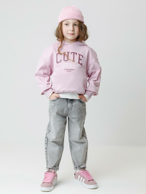 Худи с капюшоном для девочки из тёплого футера с начёсом. Модель оверсайз. Пояс и манжеты выполнены из мягкого эластичного трикотажа. Худи сохраняет форму и стойкий цвет после многочисленных стирок и идеально подходит на каждый день. Оригинальный принт выполнен из стойких текстильных гипоаллергенных красителей. Все трикотажные полотна производятся в соответствии с нормами швейцарского сертификата ЭкоТекс.