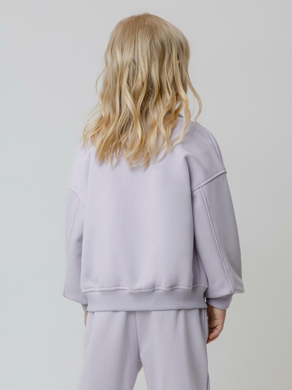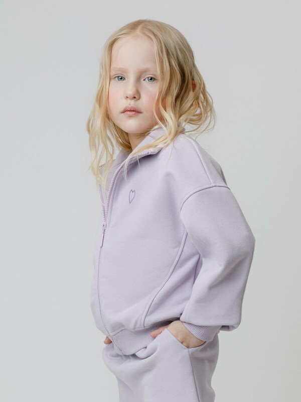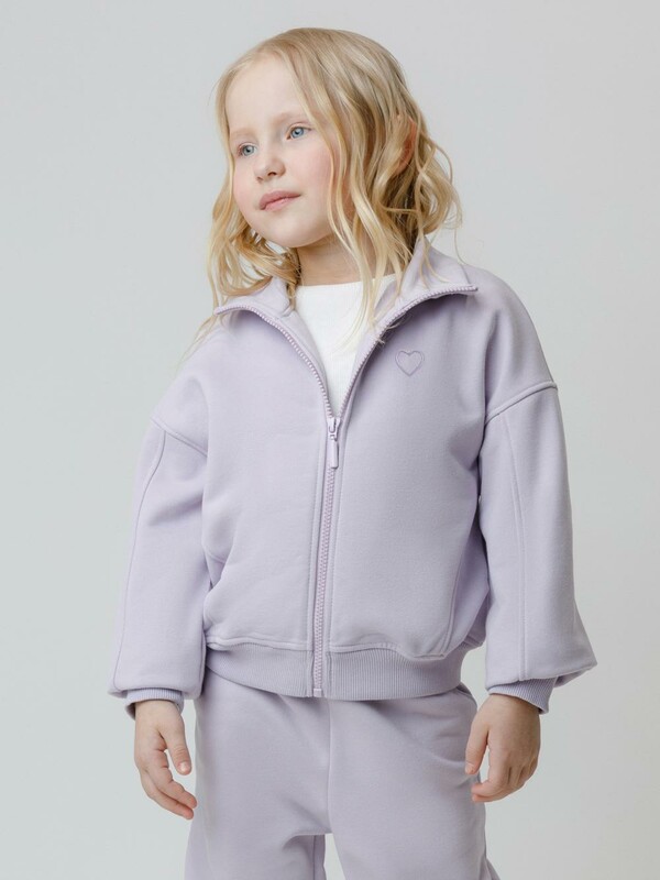 Бомбер для девочки со спущенными плечами и воротником-стойкой. Изготовлен из высококачественного петельчатого футера трёхнитки. Застёгивается на молнию. Манжеты и пояс выполнены из эластичного полотна. Изделие сохраняет цвет и форму после многократных стирок. Все трикотажные полотна производятся в соответствии с нормами швейцарского сертификата ЭкоТекс.