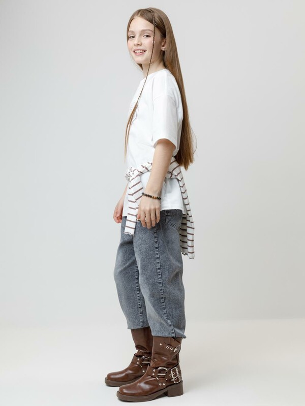 Футболка для девочки из гладкого трикотажа, произведённого из высококачественного натурального хлопка. Оригинальный принт выполнен из стойких текстильных гипоаллергенных красителей. Изделие сохраняет цвет и форму после многократных стирок. Все трикотажные полотна производятся в соответствии с нормами швейцарского сертификата ЭкоТекс.