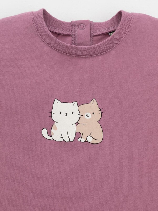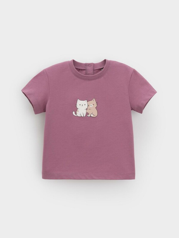 Футболка для девочки из гладкого трикотажа, произведённого из высококачественного натурального хлопка. Застёгивается на спинке на планку с кнопками. Оригинальный принт выполнен из стойких текстильных гипоаллергенных красителей. Изделие сохраняет цвет и форму после многократных стирок. Все трикотажные полотна производятся в соответствии с нормами швейцарского сертификата ЭкоТекс.