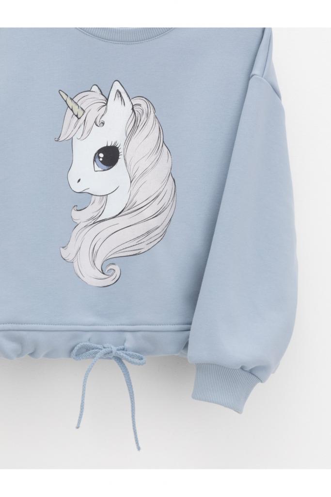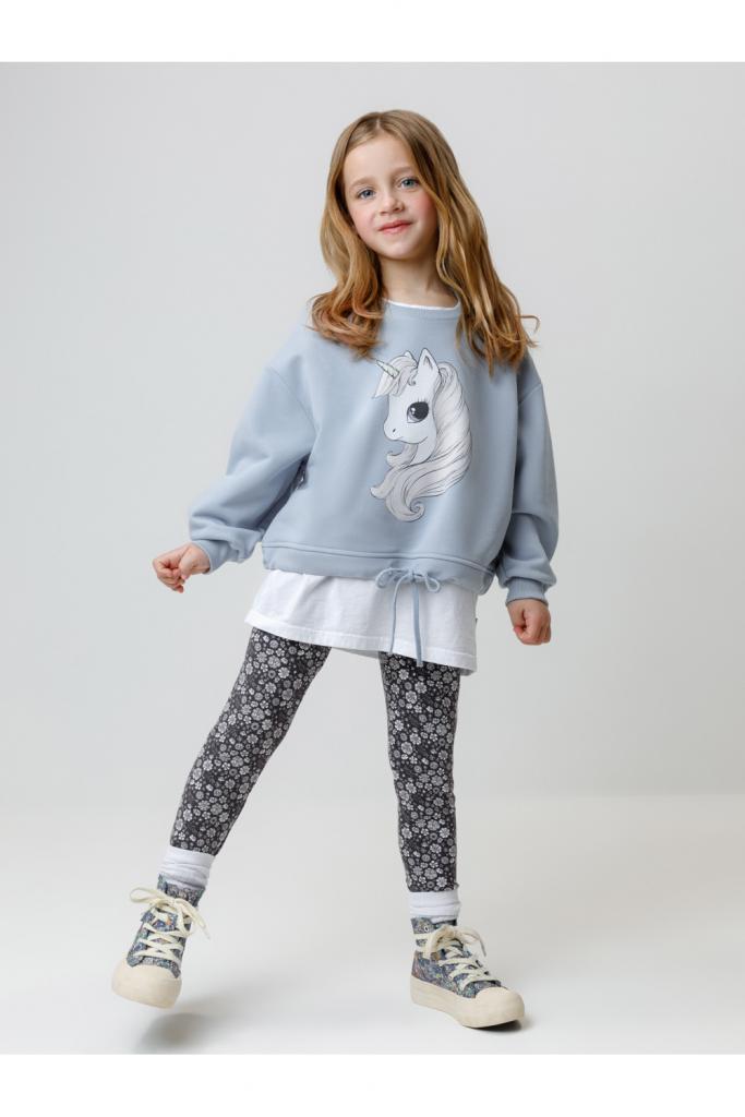 Свитшот для девочки из мягкого петельчатого футера трёхнитки. В составе 80% натурального хлопка и 20% полиэстера, при этом полиэстер ввязан внутрь по особой технологии и не соприкасается с кожей. Застёгивается на кнопки в размерах 92 и 98. Пояс регулируется по ширине с помощью шнурка. На рукавах эластичные манжеты. Оригинальный принт выполнен из стойких текстильных гипоаллергенных красителей. Изделие сохраняет цвет и форму после многократных стирок. Все трикотажные полотна производятся в соответствии с нормами швейцарского сертификата ЭкоТекс.