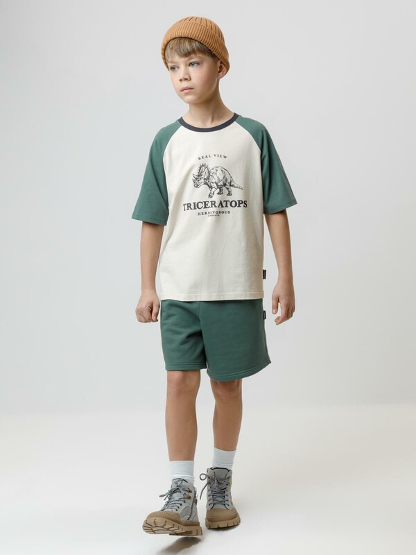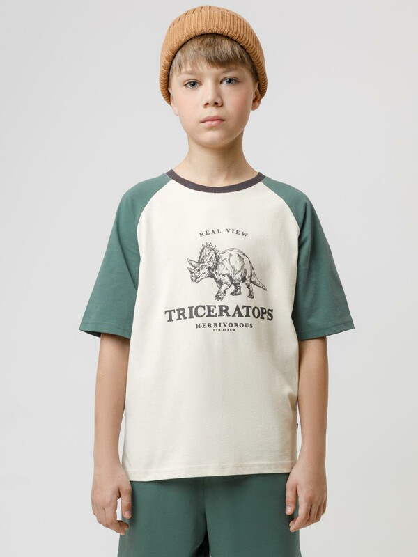 Футболка для мальчика из гладкого трикотажа, произведённого из высококачественного натурального хлопка. Оригинальный принт выполнен из стойких текстильных гипоаллергенных красителей. Изделие сохраняет цвет и форму после многократных стирок. Все трикотажные полотна производятся в соответствии с нормами швейцарского сертификата ЭкоТекс.