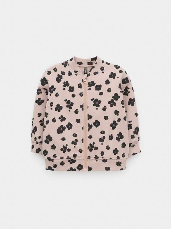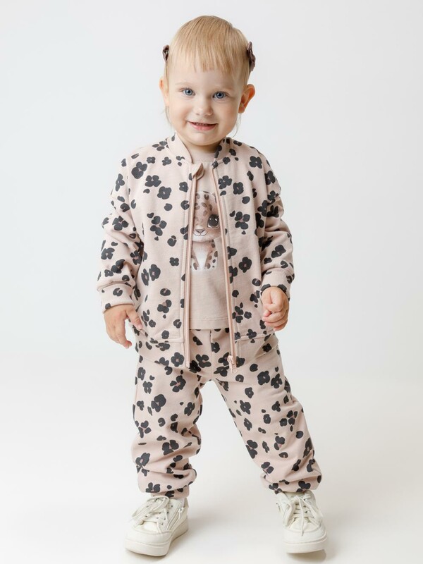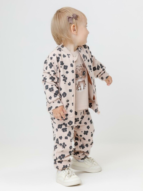 Мягкий бомбер на молнии для девочки. Изготовлен из высококачественного футера с начёсом. Воротник, манжеты и пояс выполнены из эластичного полотна. Оригинальный рисунок выполнен из стойких текстильных красителей. Бомбер сохраняет форму и стойкий цвет после многочисленных стирок. Все трикотажные полотна производятся в соответствии с нормами швейцарского сертификата ЭкоТекс.