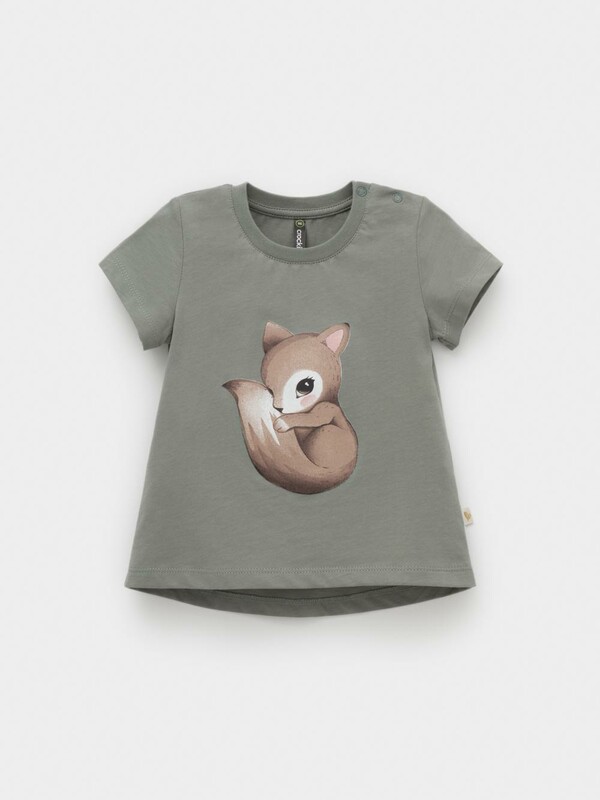 Футболка для девочки из гладкого трикотажа, произведённого из высококачественного натурального хлопка. Застёгивается на кнопки. Оригинальный принт выполнен из стойких текстильных гипоаллергенных красителей. Изделие сохраняет цвет и форму после многократных стирок. Все трикотажные полотна производятся в соответствии с нормами швейцарского сертификата ЭкоТекс.