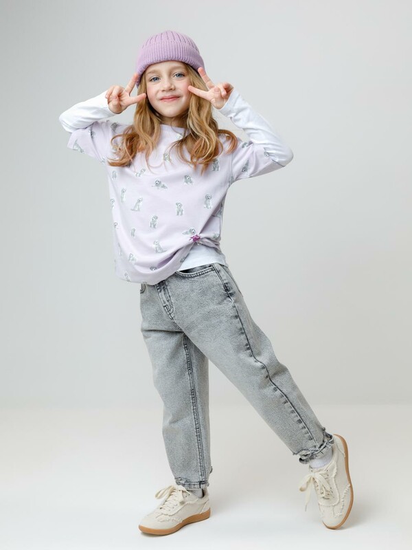 Футболка для девочки из гладкого трикотажа, произведённого из высококачественного натурального хлопка. В 92 и 98 размерах на спине для удобства при одевании застёгивается на кнопки. Оригинальный рисунок выполнен из стойких текстильных гипоаллергенных красителей. Изделие сохраняет цвет и форму после многократных стирок. Все трикотажные полотна производятся в соответствии с нормами швейцарского сертификата ЭкоТекс.