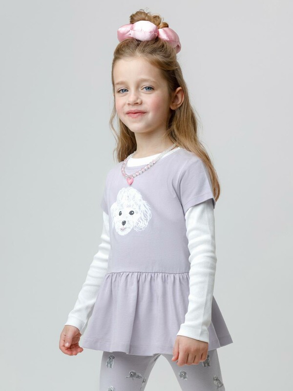 Туника для девочки с короткими рукавами из гладкого трикотажа супрем. Для удобства одевания на плече застёгивается на кнопки в размерах 92 и 98. Туника сохраняет форму и стойкий цвет после многочисленных стирок и идеально подходит на каждый день. Оригинальный принт выполнен из стойких текстильных гипоаллергенных красителей. Все трикотажные полотна производятся в соответствии с нормами швейцарского сертификата ЭкоТекс.