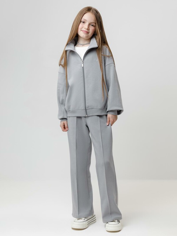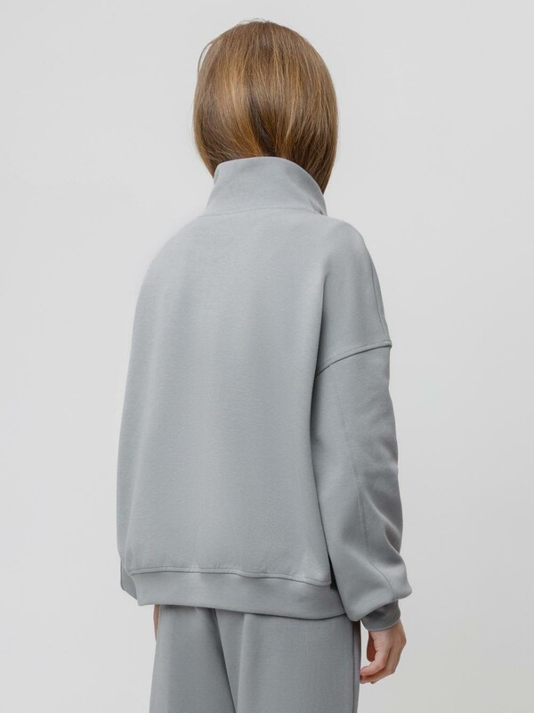 Бомбер для девочки со спущенными плечами и воротником-стойкой. Изготовлен из премиального трикотажного полотна DOUBLE FACE. Застёгивается на молнию. Манжеты и пояс выполнены из эластичного полотна. Изделие сохраняет цвет и форму после многократных стирок. Все трикотажные полотна производятся в соответствии с нормами швейцарского сертификата ЭкоТекс.