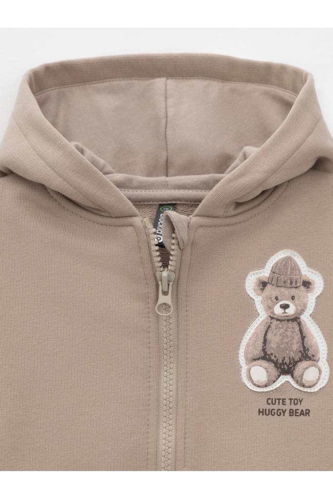 Куртка для мальчика с капюшоном на молнии. Изготовлена из мягкого петельчатого футера трёхнитки. В составе 80% натурального хлопка и 20% полиэстера, при этом полиэстер ввязан внутрь по особой технологии и не соприкасается с кожей. Воротник, манжеты и пояс выполнены из эластичного полотна. По бокам два кармана. Изделие сохраняет цвет и форму после многократных стирок. Все трикотажные полотна производятся в соответствии с нормами швейцарского сертификата ЭкоТекс.