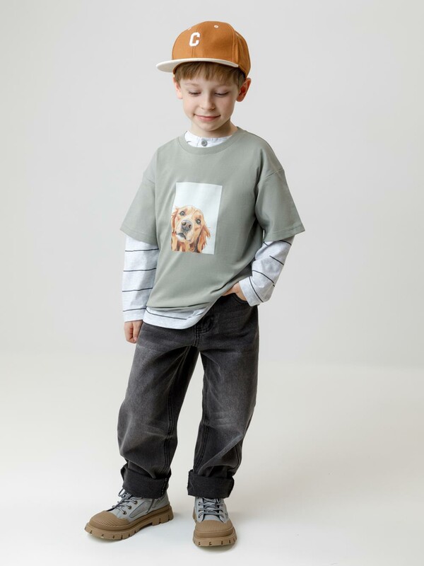 Футболка для мальчика из гладкого трикотажа, произведённого из высококачественного натурального хлопка. Для удобства одевания имеется застёжка на кнопки в размерах 92 и 98. Оригинальный принт нанесён с помощью стойких текстильных гипоаллергенных красителей. Изделие сохраняет цвет и форму после многократных стирок. Все трикотажные полотна производятся в соответствии с нормами швейцарского сертификата ЭкоТекс.