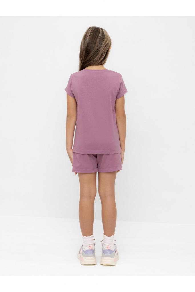 Трикотажные шорты для девочки из петельчатого футера. Эластичный пояс на резинке регулируется по ширине с помощью шнурка, по бокам два удобных кармана.