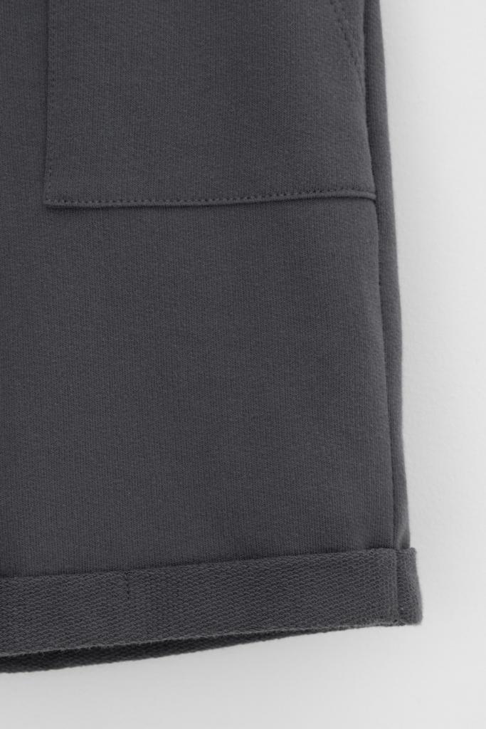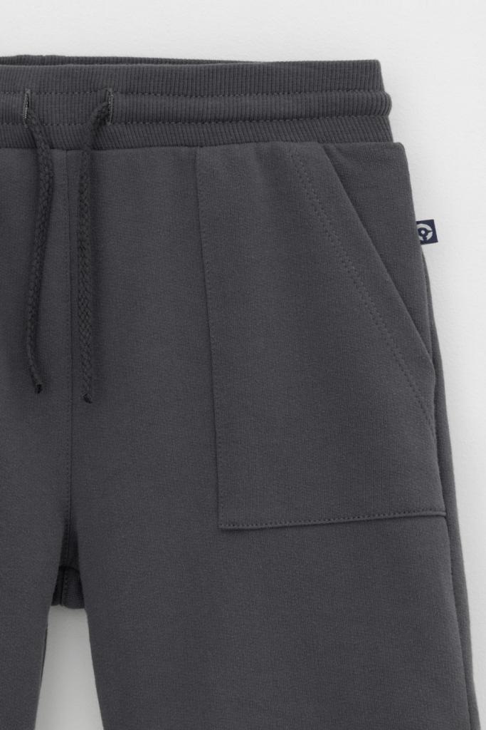 Трикотажные шорты для мальчика из петельчатого футера. Эластичный пояс на резинке регулируется по ширине с помощью шнура, по бокам два удобных накладных кармана.
