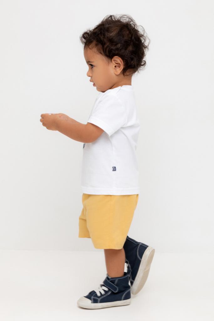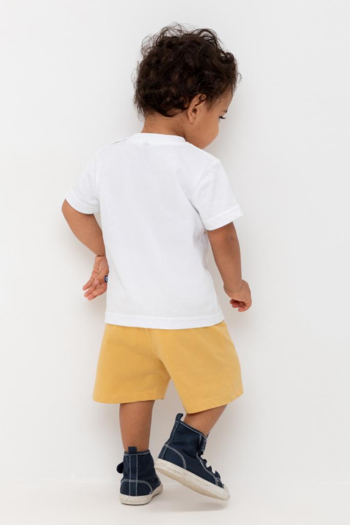 Легкие трикотажные шорты для мальчика из высококачественного хлопка. Эластичный пояс регулируется при помощи шнурка.