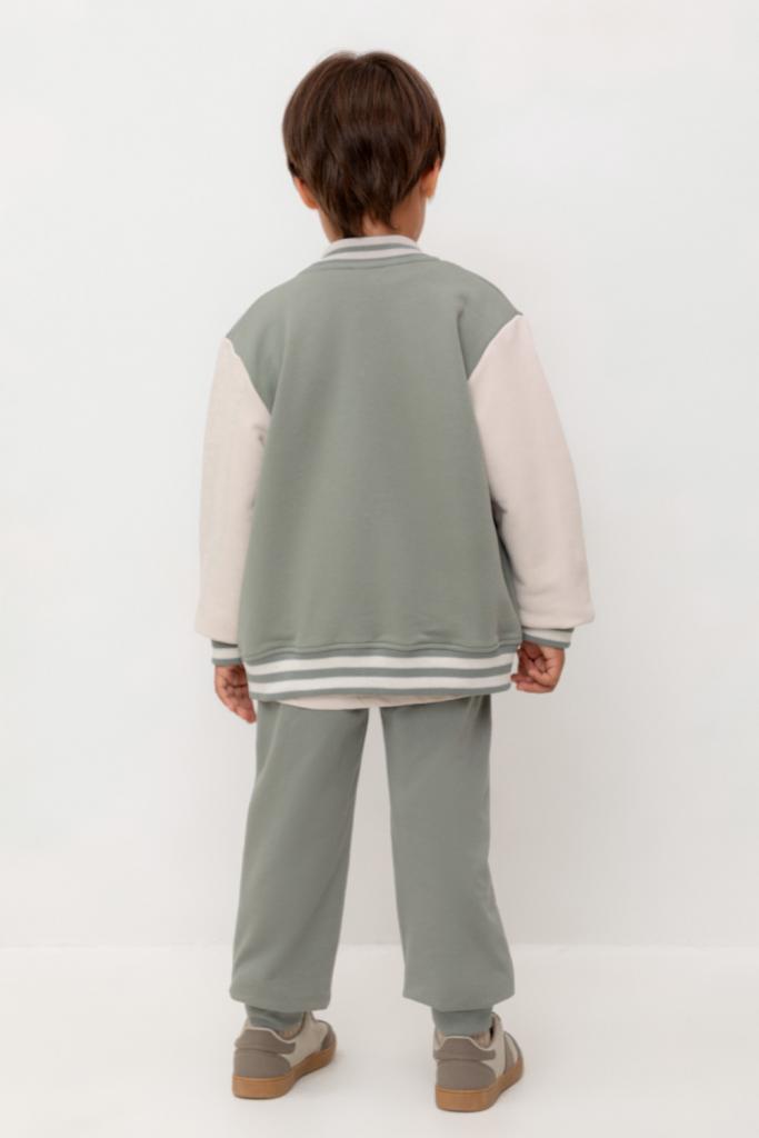 Брюки для мальчика из мягкого петельчатого трикотажа. Эластичный пояс на резинке регулируется по ширине с помощью шнурка. По бокам два удобных накладных кармана. Внизу эластичные манжеты.