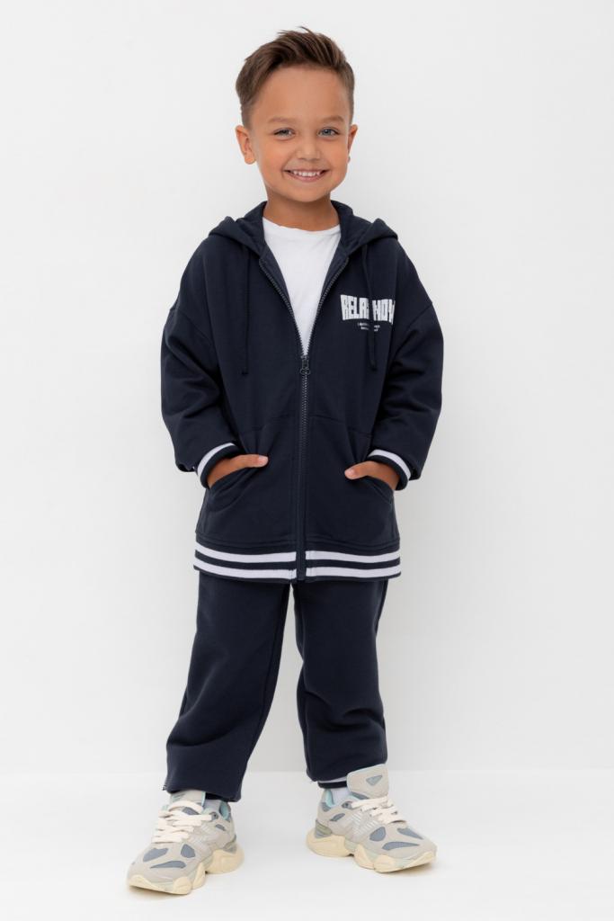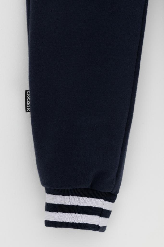 Объёмные брюки для мальчика из мягкого петельчатого трикотажа. В составе 80% натурального хлопка и 20% полиэстера, при этом полиэстер ввязан внутрь по особой технологии и не соприкасается с кожей. Эластичный пояс на резинке регулируется по ширине с помощью шнурка, по бокам два удобных кармана, внизу эластичные манжеты.