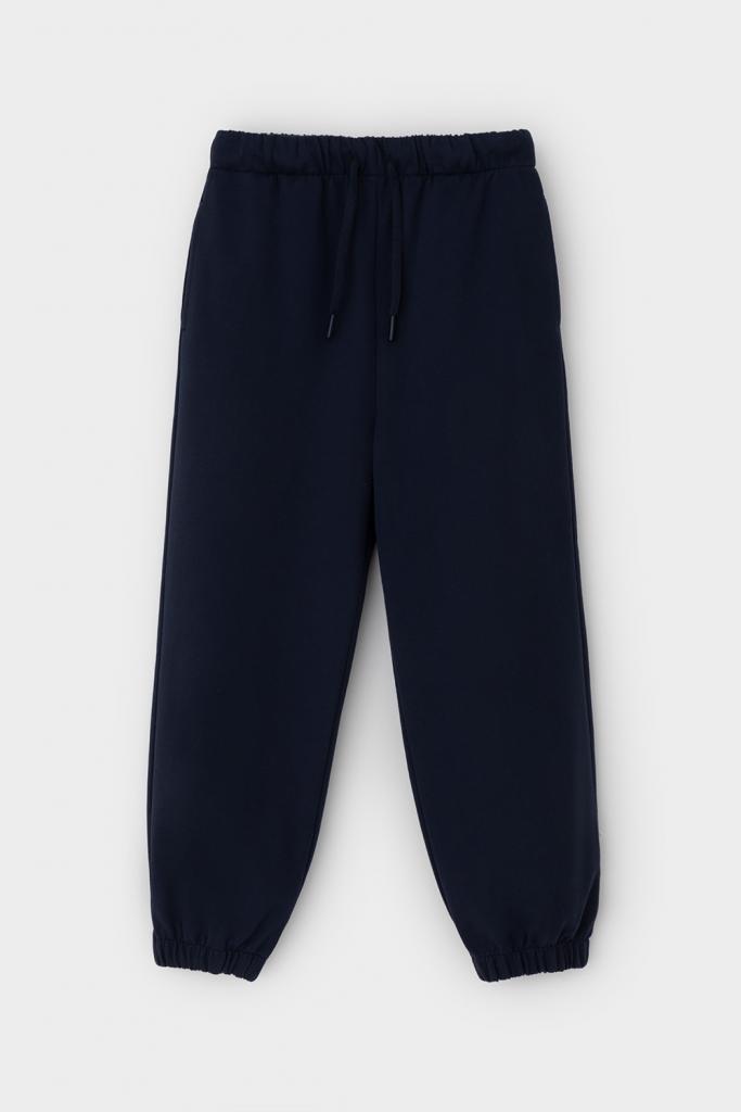 Трикотажные брюки для мальчика из петельчатого футера. Эластичный пояс на резинке регулируется по ширине с помощью шнурка. По бокам два удобных кармана. Внизу эластичные манжеты на резинке.