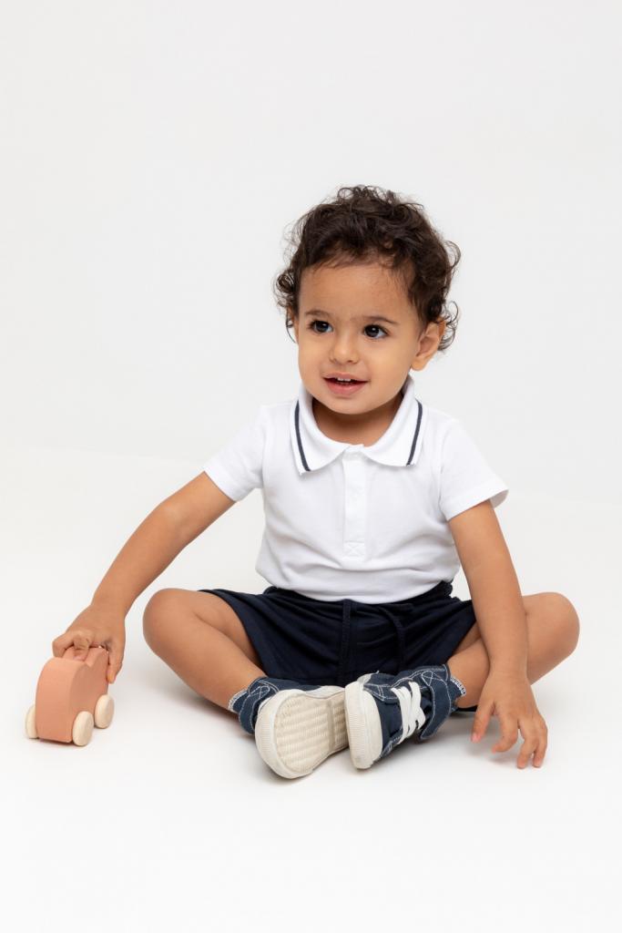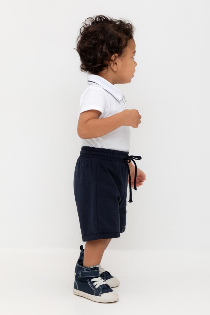 Легкие трикотажные шорты для мальчика из высококачественного хлопка. Эластичный пояс регулируется при помощи шнурка.