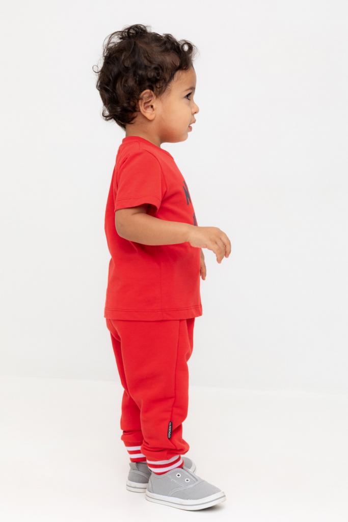 Объёмные брюки для мальчика из мягкого петельчатого трикотажа. В составе 80% натурального хлопка и 20% полиэстера, при этом полиэстер ввязан внутрь по особой технологии и не соприкасается с кожей. Эластичный пояс на резинке регулируется по ширине с помощью шнурка, внизу эластичные манжеты.