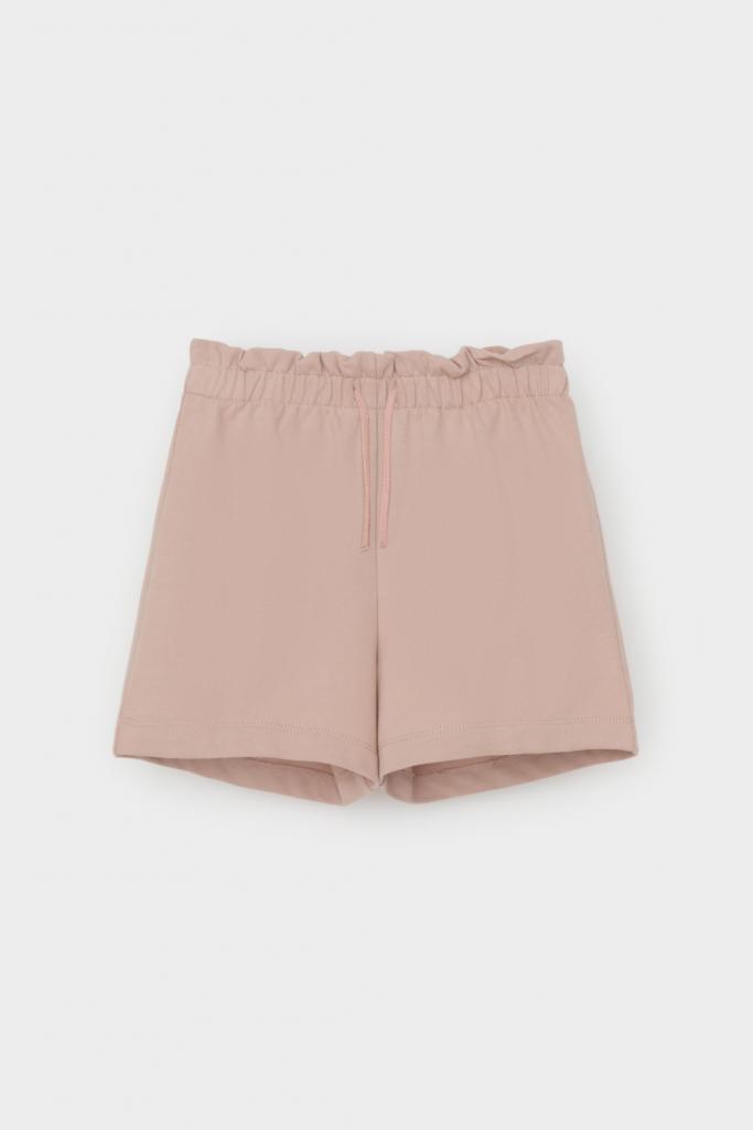 Легкие трикотажные шорты для девочки из высококачественного хлопка. Эластичный пояс регулируется при помощи шнурка.