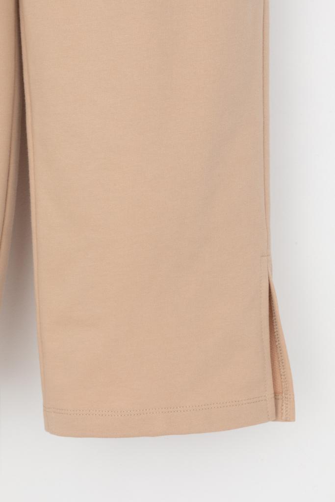 Прямые брюки для девочки из мягкого петельчатого трикотажа. Эластичный пояс на резинке регулируется по ширине с помощью шнурка. По бокам два удобных кармана. Спереди застроченные стрелки.