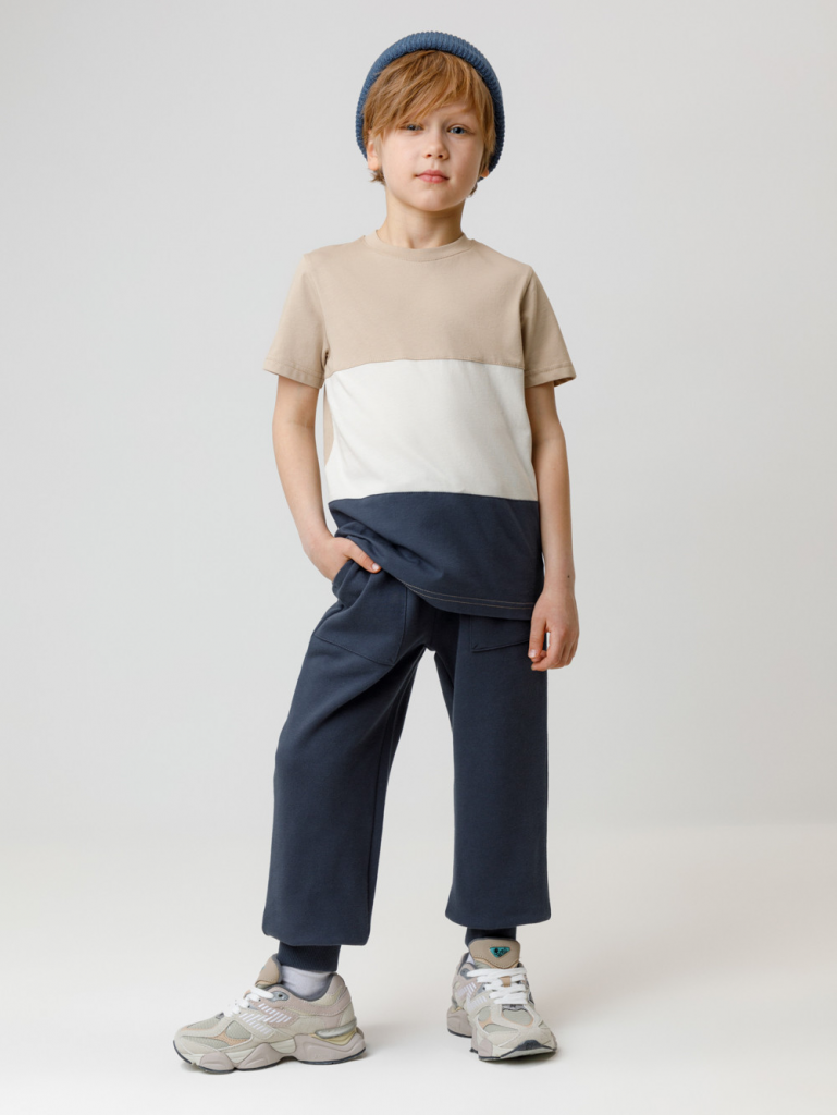 Брюки для мальчика из мягкого петельчатого футера трёхнитки. Модель с эластичным поясом на резинке и утягивающим шнурком для регулировки по талии. По бокам два накладных кармана. Низ на манжетах. Изделие сохраняет цвет и форму после многократных стирок. Все трикотажные полотна производятся в соответствии с нормами швейцарского сертификата ЭкоТекс.