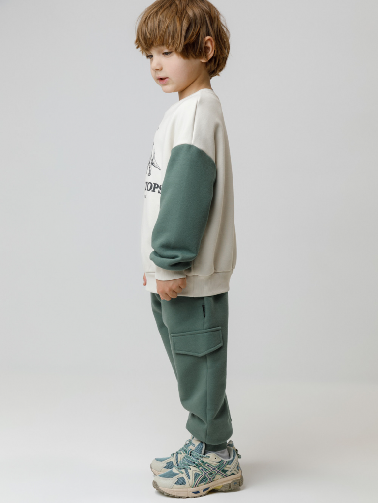 Брюки для мальчика из мягкого петельчатого футера трёхнитки. Модель с эластичным поясом на резинке и утягивающим шнурком для регулировки по талии. По бокам два кармана. Низ на манжетах. Изделие сохраняет цвет и форму после многократных стирок. Все трикотажные полотна производятся в соответствии с нормами швейцарского сертификата ЭкоТекс.