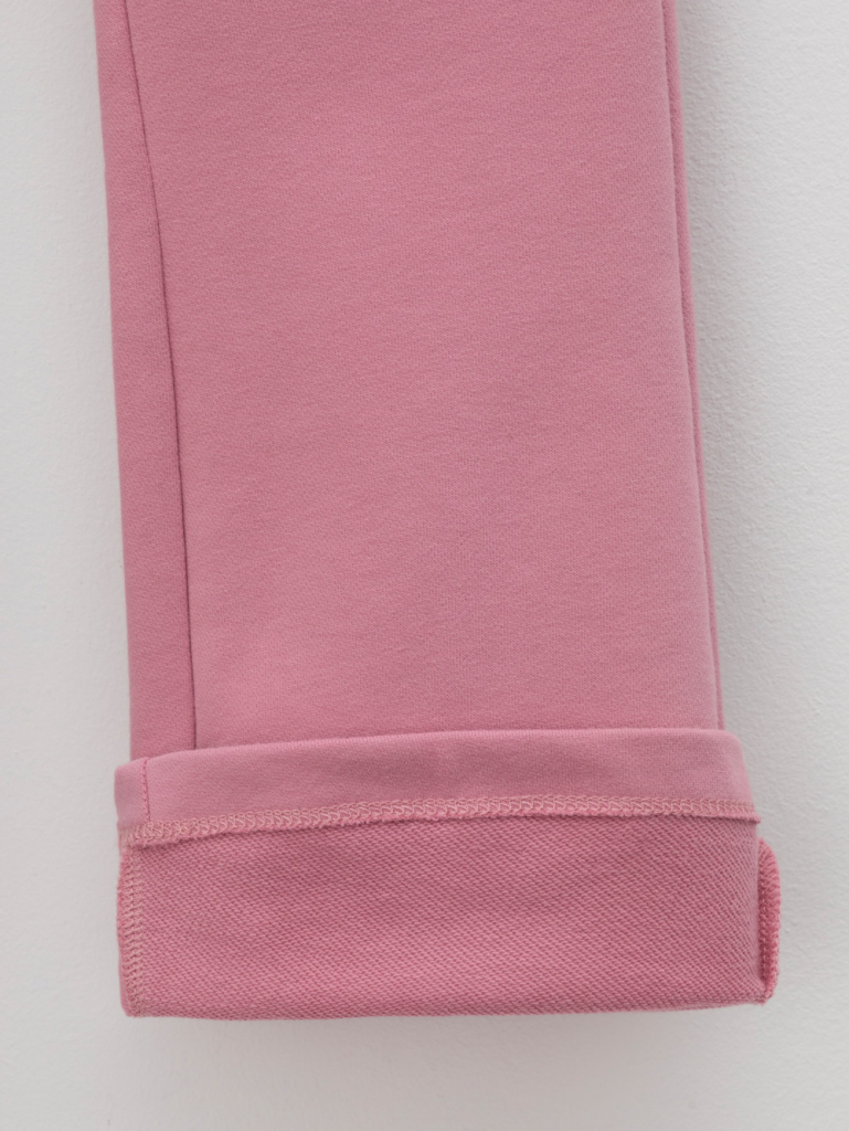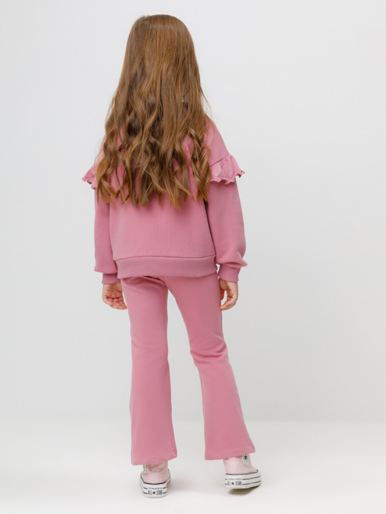 Брюки из мягкого эластичного футера для девочки. Модель с поясом на резинке. Изделие сохраняет цвет и форму после многократных стирок. Все трикотажные полотна производятся в соответствии с нормами швейцарского сертификата ЭкоТекс.