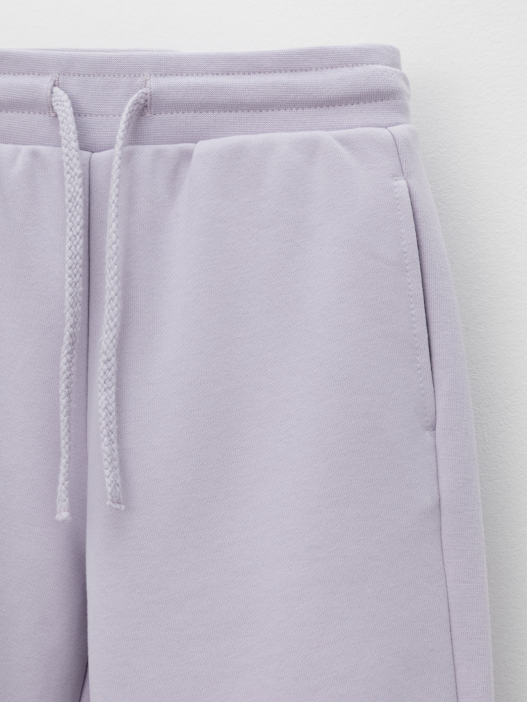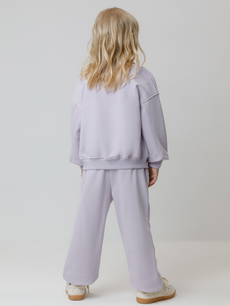 Брюки из мягкого петельчатого футера для девочки. Модель с эластичным поясом на резинке. По бокам два удобных кармана. Низ на манжетах. Изделие сохраняет цвет и форму после многократных стирок. Все трикотажные полотна производятся в соответствии с нормами швейцарского сертификата ЭкоТекс.