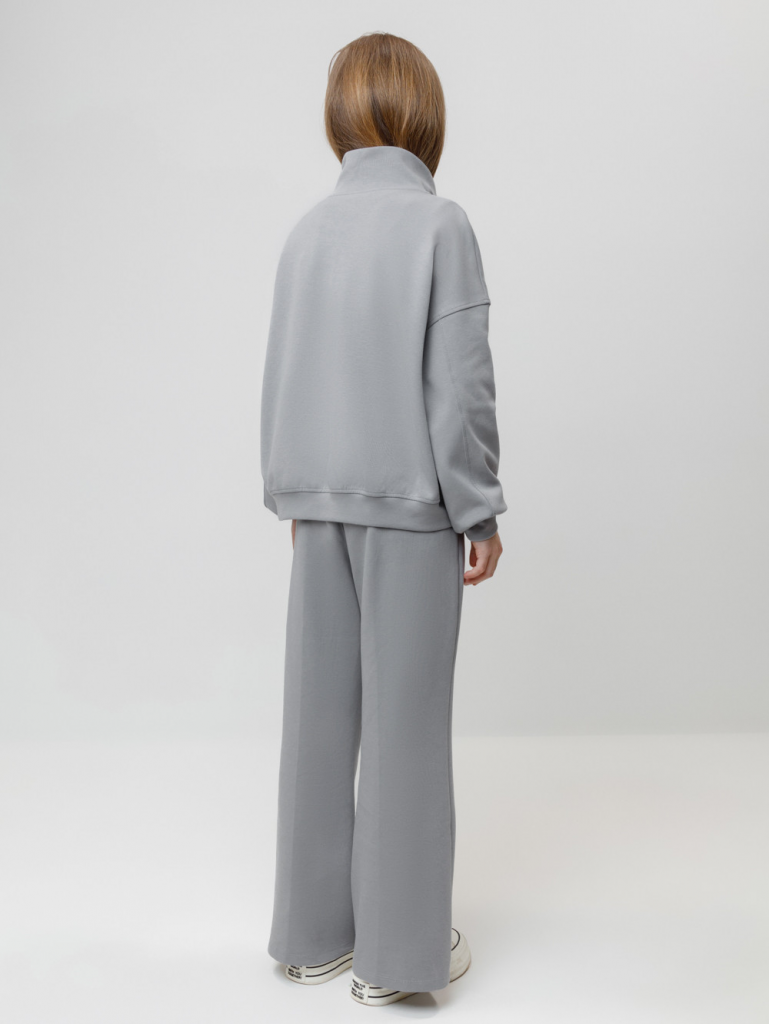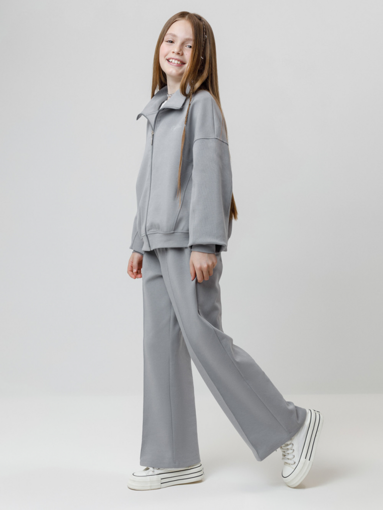 Прямые брюки со стрелками для девочки. Изготовлены из премиального трикотажного полотна DOUBLE FACE. Эластичный пояс регулируется по ширине с помощью шнурка. По бокам два удобных кармана. Изделие сохраняет цвет и форму после многократных стирок. Все трикотажные полотна производятся в соответствии с нормами швейцарского сертификата ЭкоТекс.