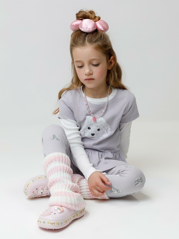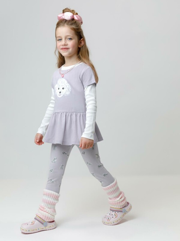 Трикотажные лосины для девочки из гладкого эластичного полотна. Оригинальный рисунок выполнен из стойких текстильных гипоаллергенных красителей. Изделие сохраняет цвет и форму после многократных стирок. Все трикотажные полотна производятся в соответствии с нормами швейцарского сертификата ЭкоТекс.