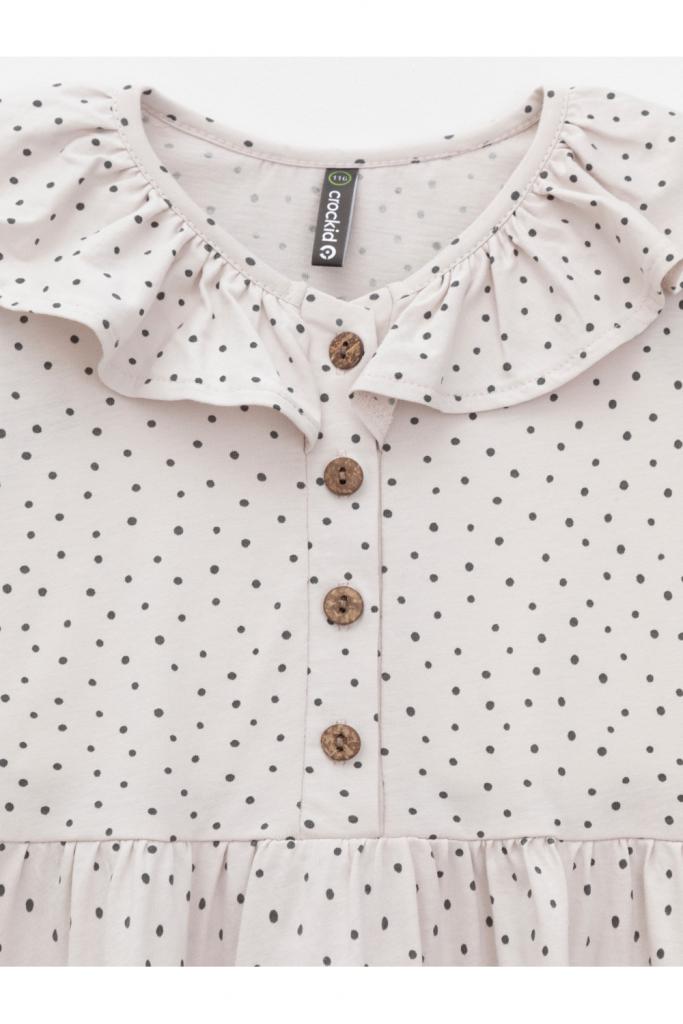 Платье для девочки с длинными рукавами из гладкого хлопкового трикотажа. Для удобства одевания спереди застёгивается на пуговицы. Платье сохраняет форму и стойкий цвет после многочисленных стирок и идеально подходит на каждый день. Все трикотажные полотна производятся в соответствии с нормами швейцарского сертификата ЭкоТекс.