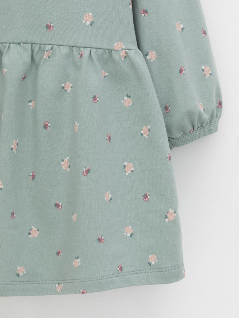 Платье для девочки с длинными рукавами из мягкого петельчатого трикотажа. Для удобства одевания в 98 размере платье застёгивается на кнопки спереди. Платье сохраняет форму и стойкий цвет после многочисленных стирок и идеально подходит на каждый день.