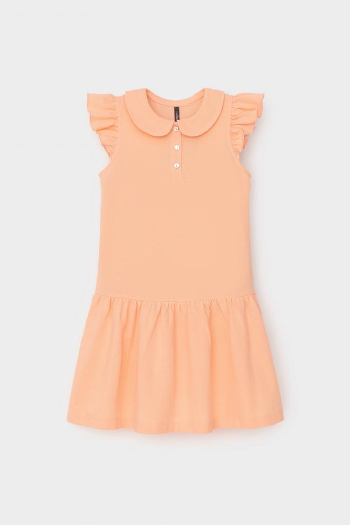 Платье для девочки из высококачественного трикотажа пике с воротничком и крылышками. Для удобства одевания платье застёгивается на кнопки спереди. Платье сохраняет форму и стойкий цвет после многочисленных стирок и идеально подходит на каждый день.