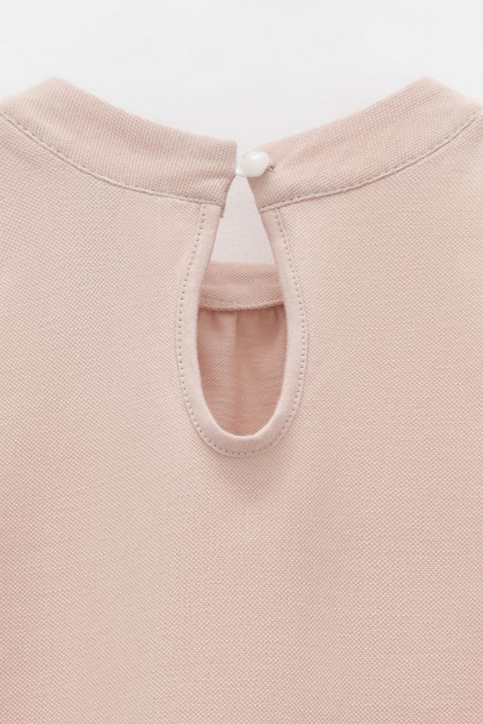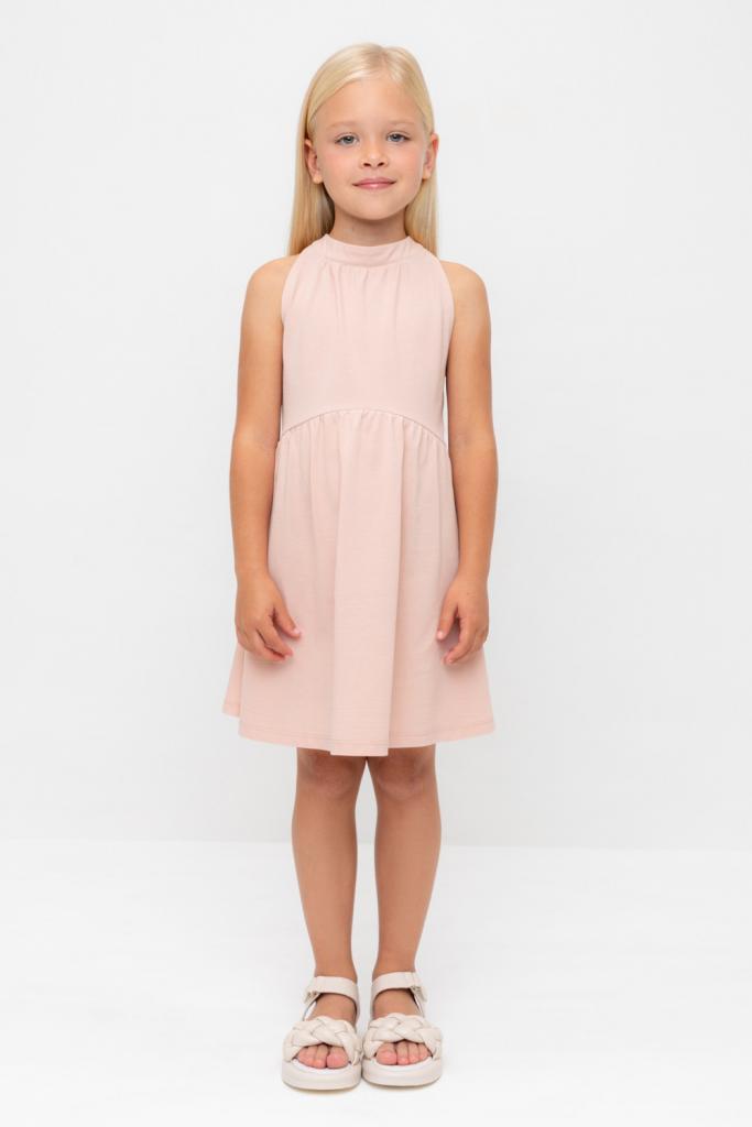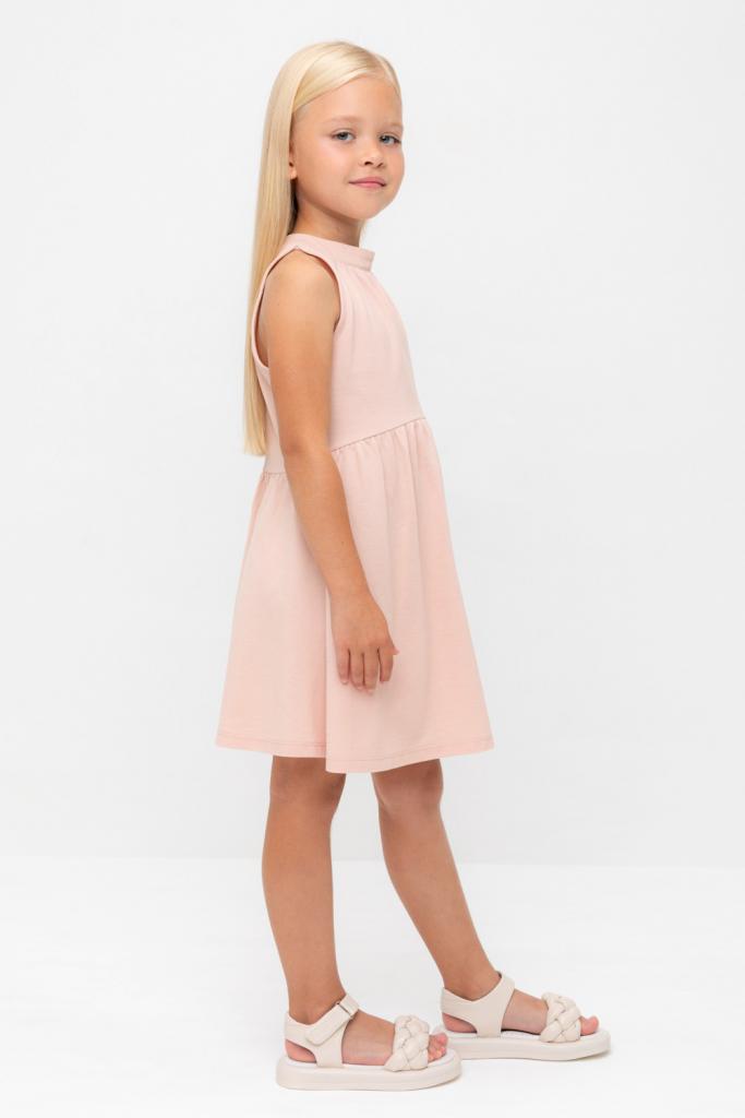Платье для девочки из высококачественного трикотажа пике с воротничком-стойкой. Для удобства одевания платье застёгивается на пуговицу на спинке. Платье сохраняет форму и стойкий цвет после многочисленных стирок и идеально подходит на каждый день.