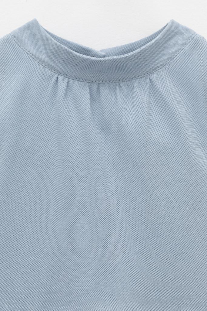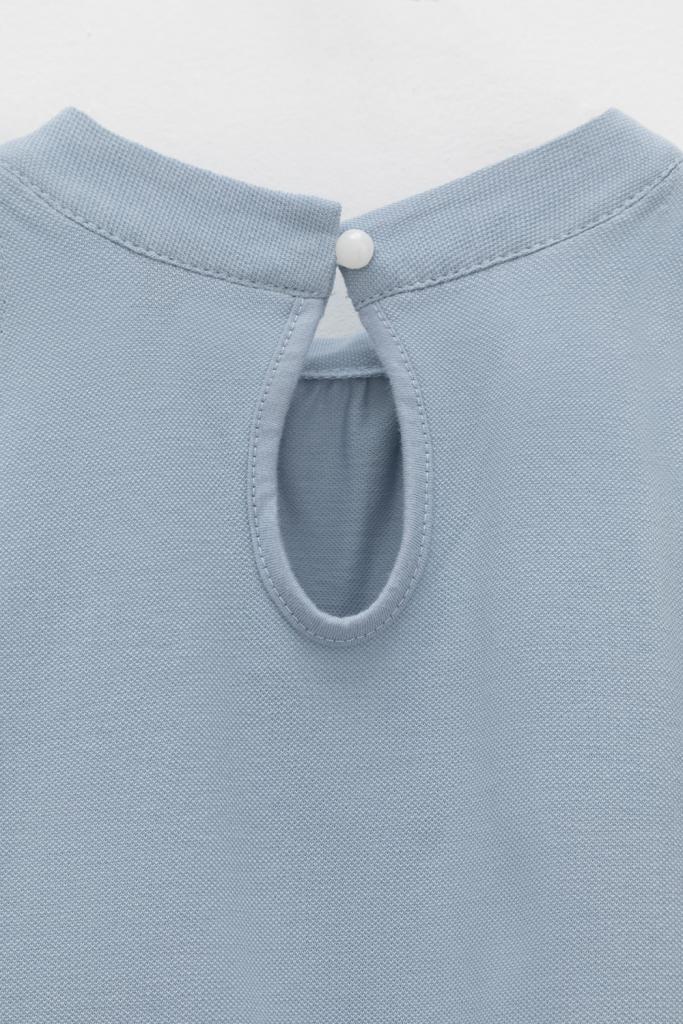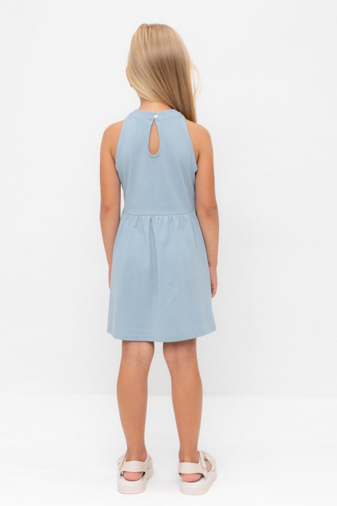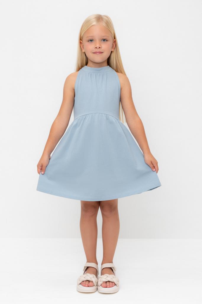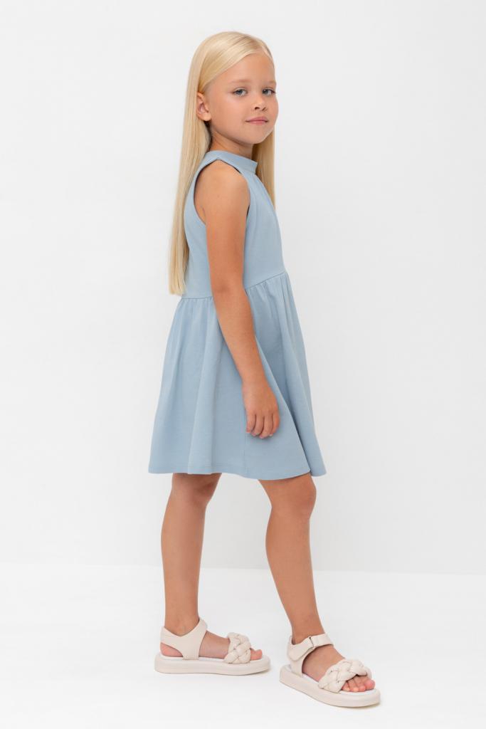 Платье для девочки из высококачественного трикотажа пике с воротничком-стойкой. Для удобства одевания платье застёгивается на пуговицу на спинке. Платье сохраняет форму и стойкий цвет после многочисленных стирок и идеально подходит на каждый день.