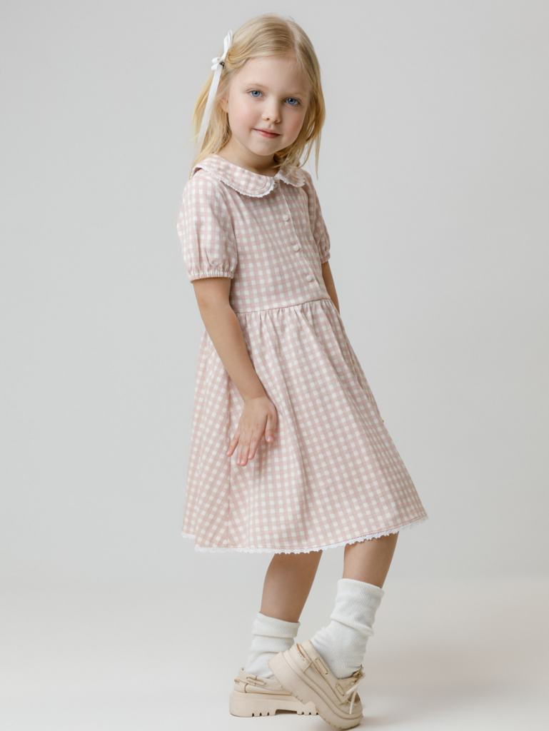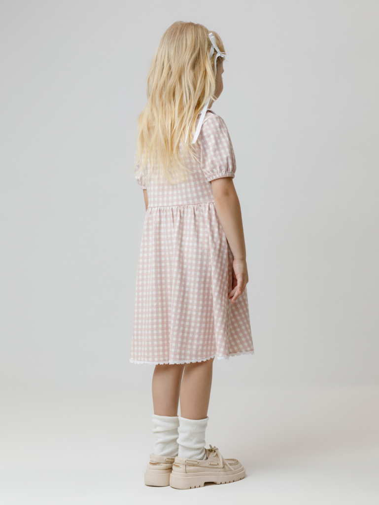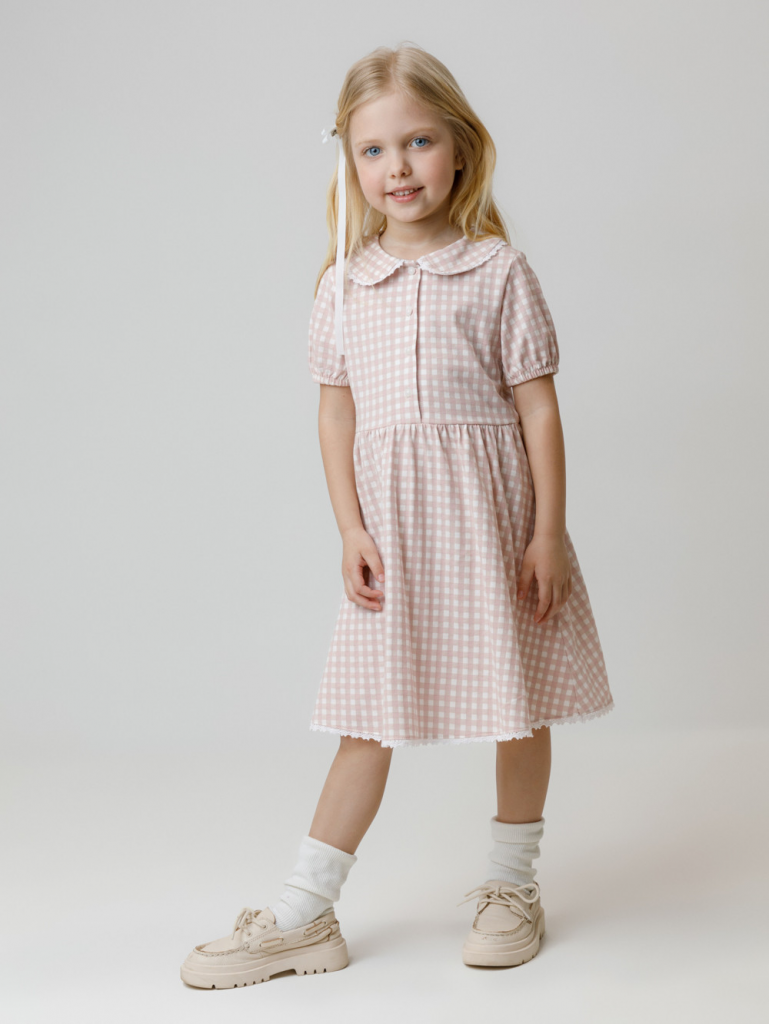 КР 5932/розовый лед,маленькая клетка к601 платье
