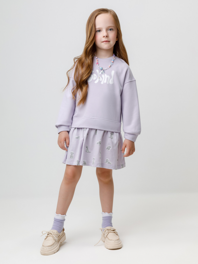Платье для девочки с длинными рукавами. Изготовлено из мягкого петельчатого трикотажа и украшено оборкой из гладкого материала супрем. Платье сохраняет форму и стойкий цвет после многочисленных стирок и идеально подходит на каждый день. Оригинальные принт и набивка выполнены из стойких текстильных гипоаллергенных красителей. Все трикотажные полотна производятся в соответствии с нормами швейцарского сертификата ЭкоТекс.