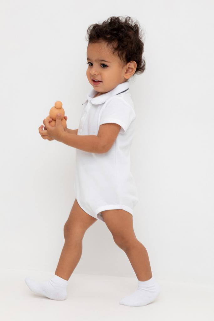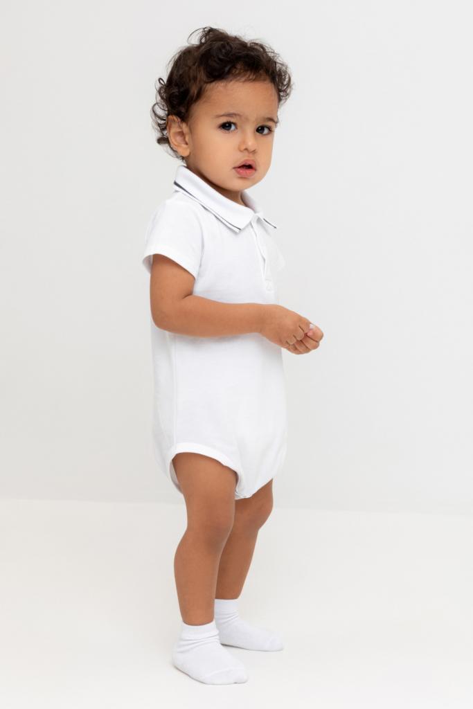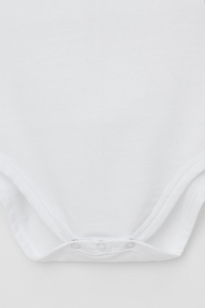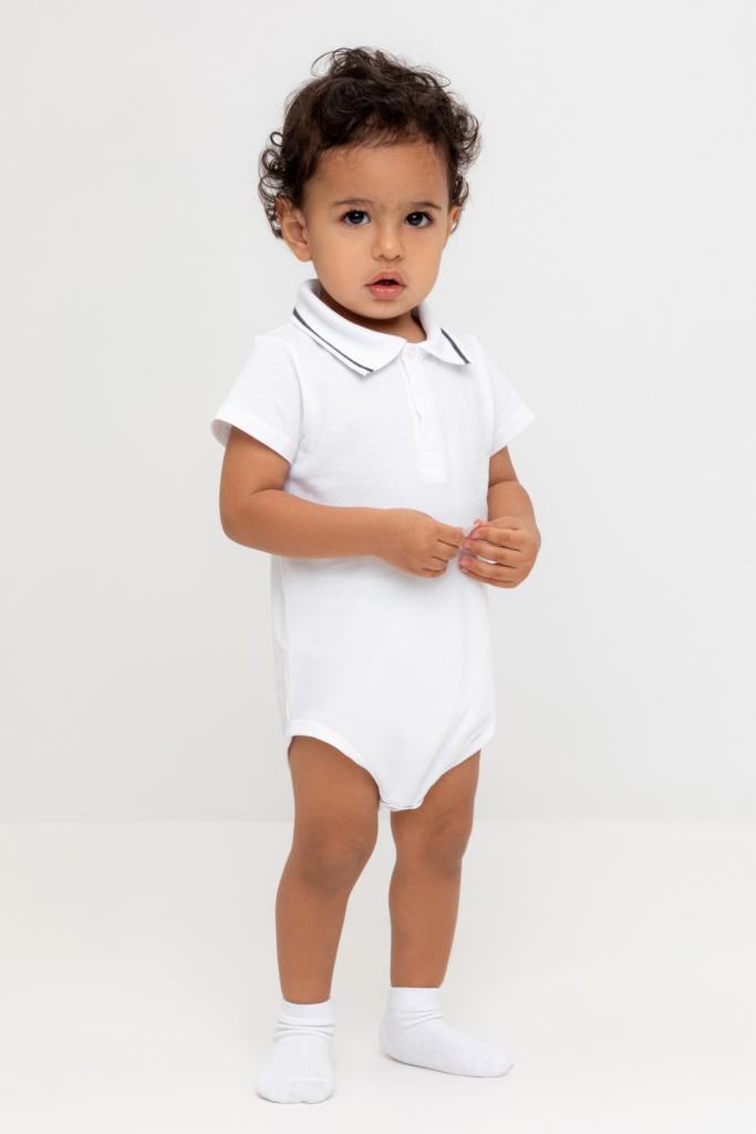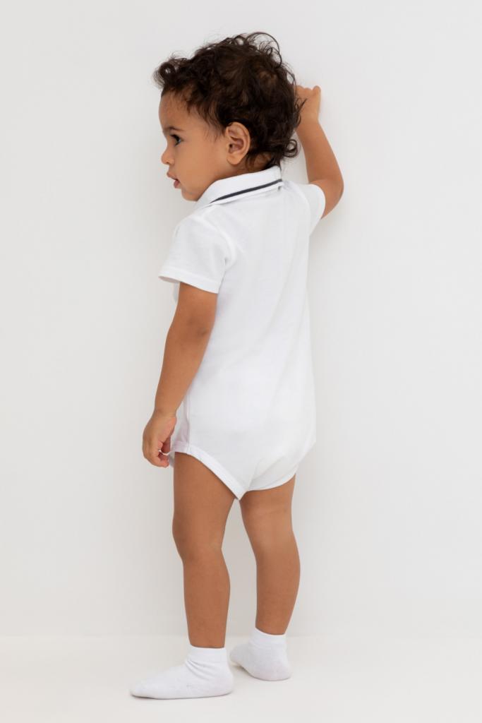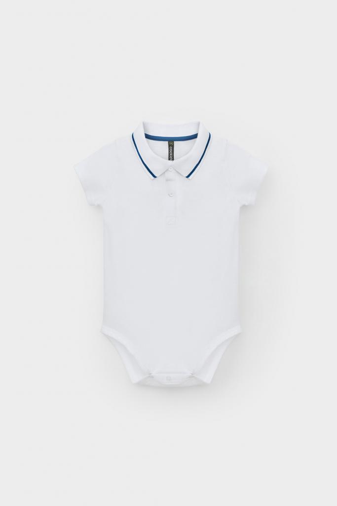 Боди для мальчика из трикотажного полотна пике. Вязаный воротник. Удобная застежка на кнопки спереди и по низу изделия.