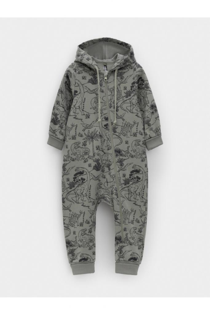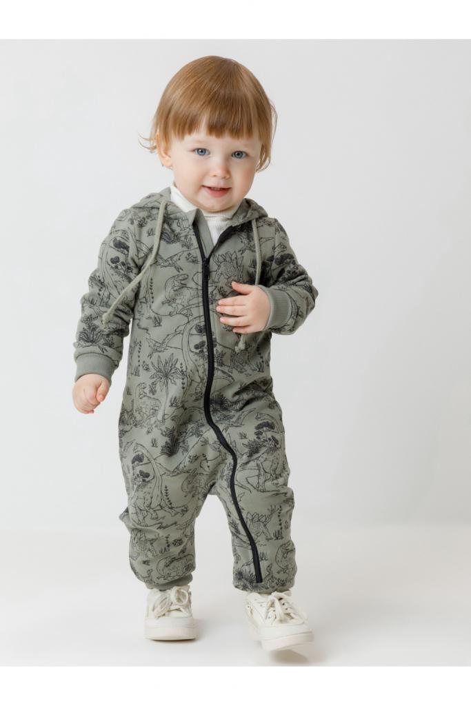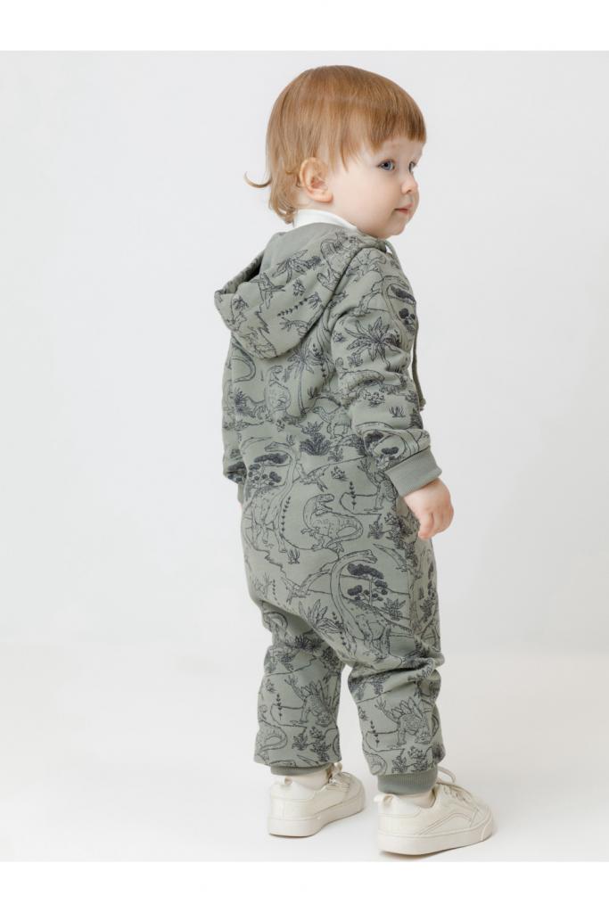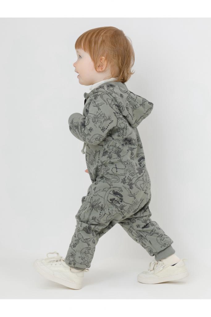 Тёплый комбинезон с капюшоном для мальчика. Изготовлен из высококачественного футера с начёсом. Застёгивается на молнию. В капюшоне мягкий подклад из гладкого материала супрем. Манжеты и пояс выполнены из эластичного полотна. Изделие сохраняет цвет и форму после многократных стирок. Все трикотажные полотна производятся в соответствии с нормами швейцарского сертификата ЭкоТекс.