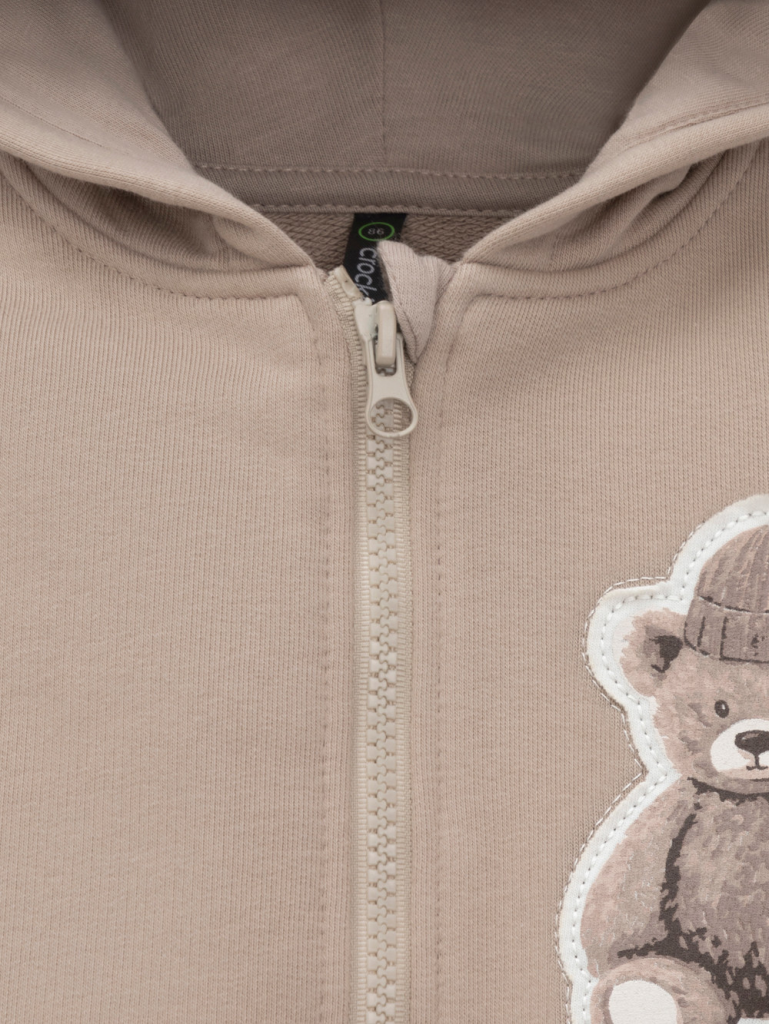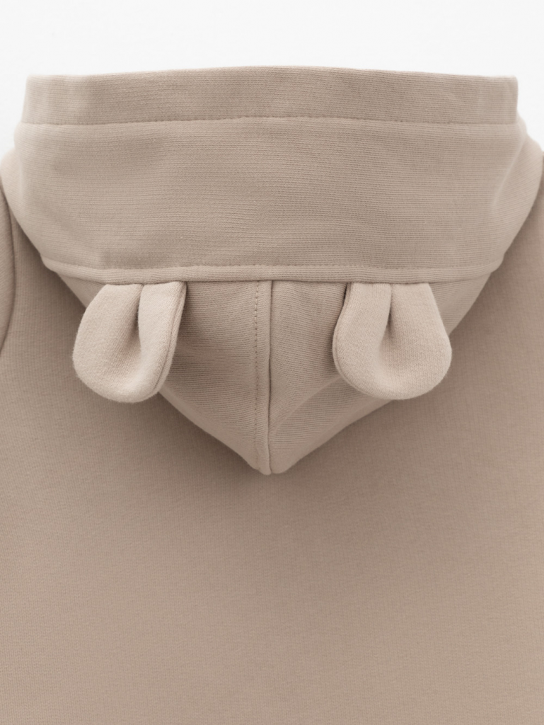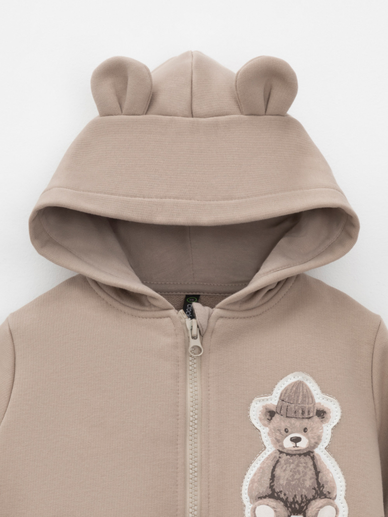 Комбинезон с капюшоном для мальчика. Изготовлен из высококачественного петельчатого футера трёхнитки. В составе 80% натурального хлопка и 20% полиэстера, при этом полиэстер ввязан внутрь по особой технологии и не соприкасается с кожей. Застёгивается на молнию. В капюшоне мягкий подклад из гладкого материала супрем, сверху декоративные ушки. Манжеты и пояс выполнены из эластичного полотна. Изделие сохраняет цвет и форму после многократных стирок. Все трикотажные полотна производятся в соответствии с нормами швейцарского сертификата ЭкоТекс.