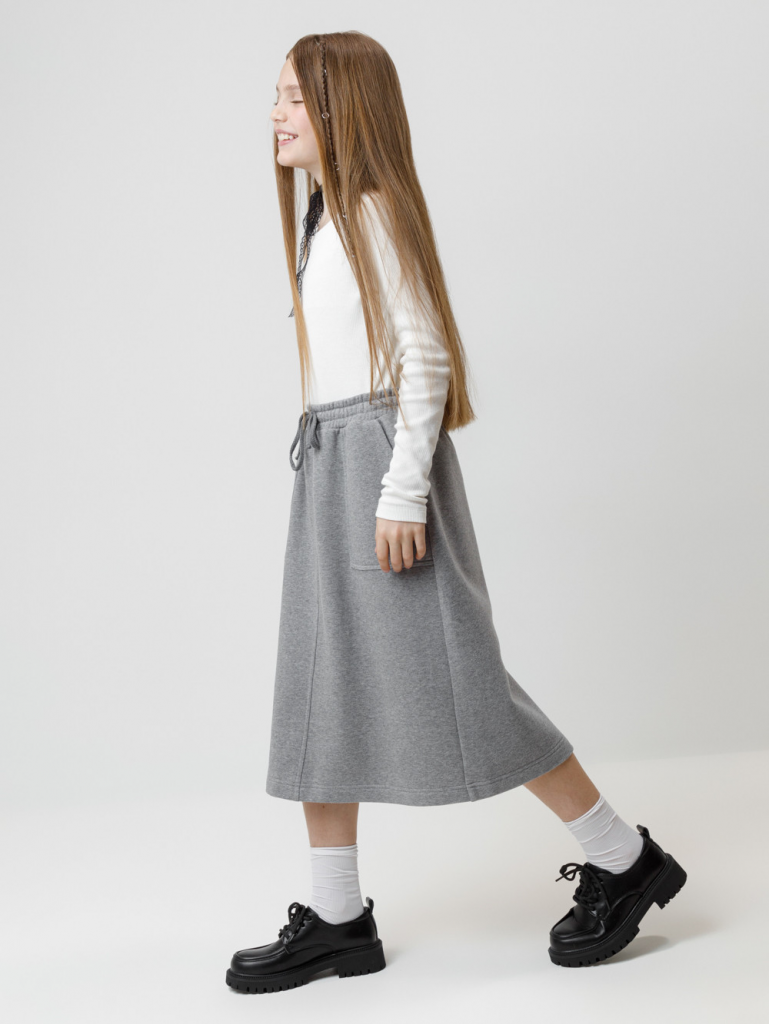 Юбка для девочки из мягкого петельчатого трикотажа. В составе 80% натурального хлопка и 20% полиэстера, при этом полиэстер ввязан внутрь по особой технологии и не соприкасается с кожей. Эластичный пояс на резинке регулируется по ширине с помощью шнурка. По бокам два удобных кармана. Изделие сохраняет цвет и форму после многократных стирок. Все трикотажные полотна производятся в соответствии с нормами швейцарского сертификата ЭкоТекс.