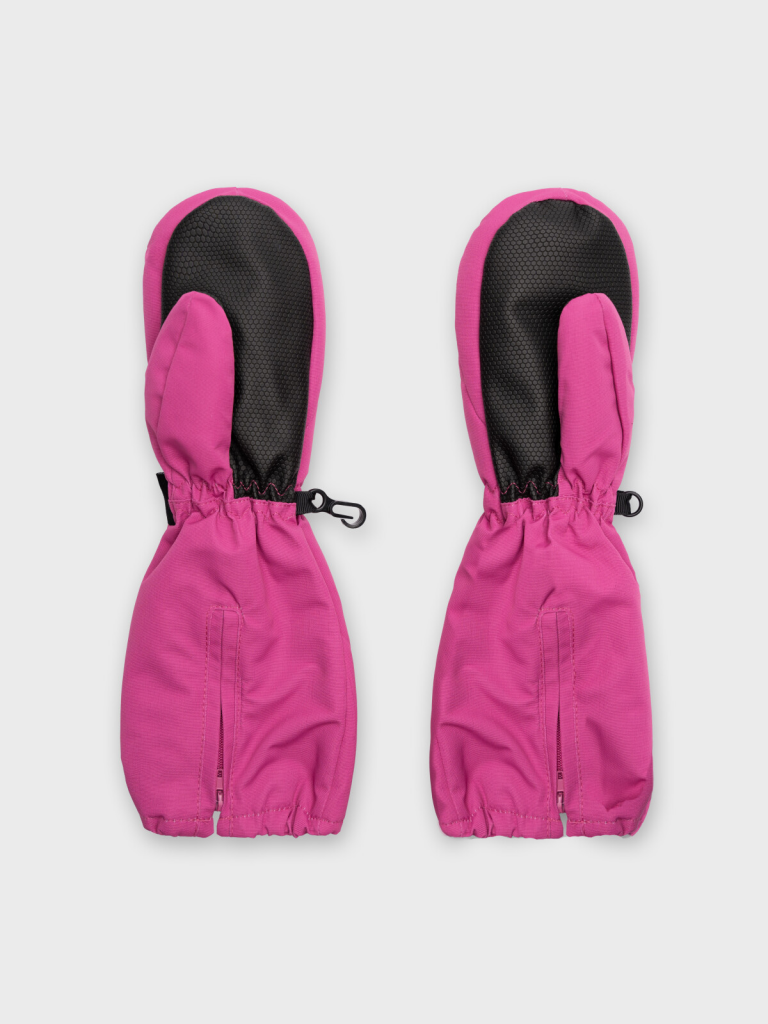 Варежки-краги детские для девочки. Утепленные варежки из мембранной ткани 5000х5000 - необходимый аксессуар для холодного времени года (осень, зима). Специальный протектор на ладонной части усиливает износостойкость изделия. Варежки имеют флисовую подкладку эластичную тесьму с карабинами, благодаря которой можно прикрепить краги друг к другу. Снегозащитная юбка. Резинка для крепления к комбинезону или к горнолужному костюму.