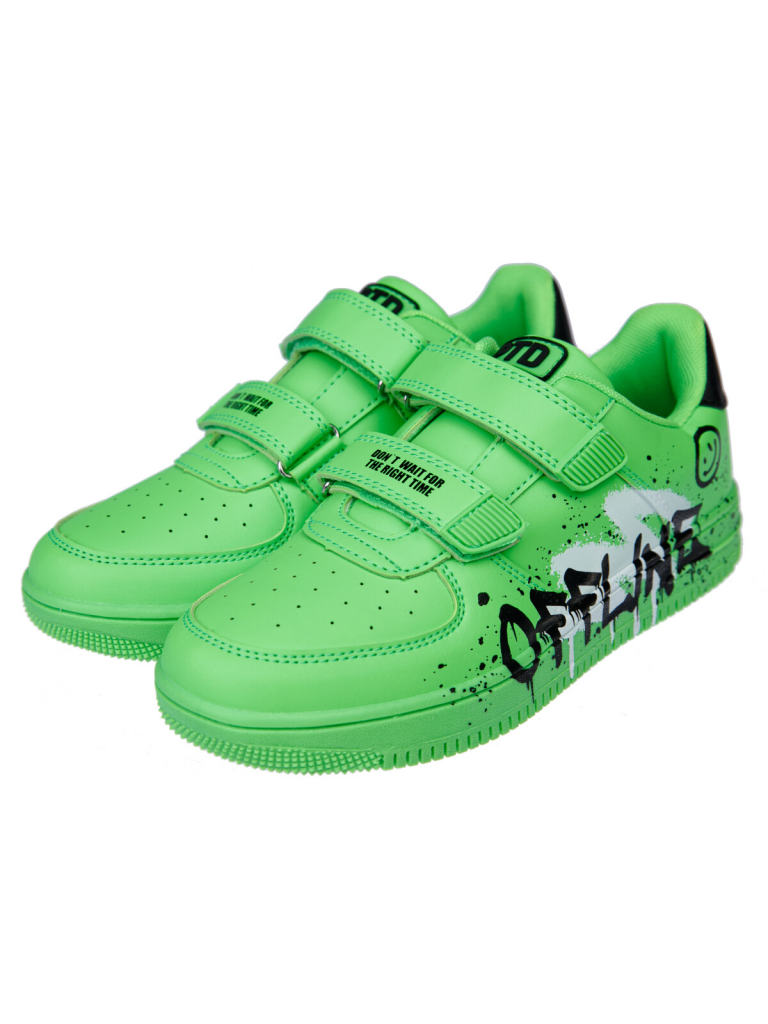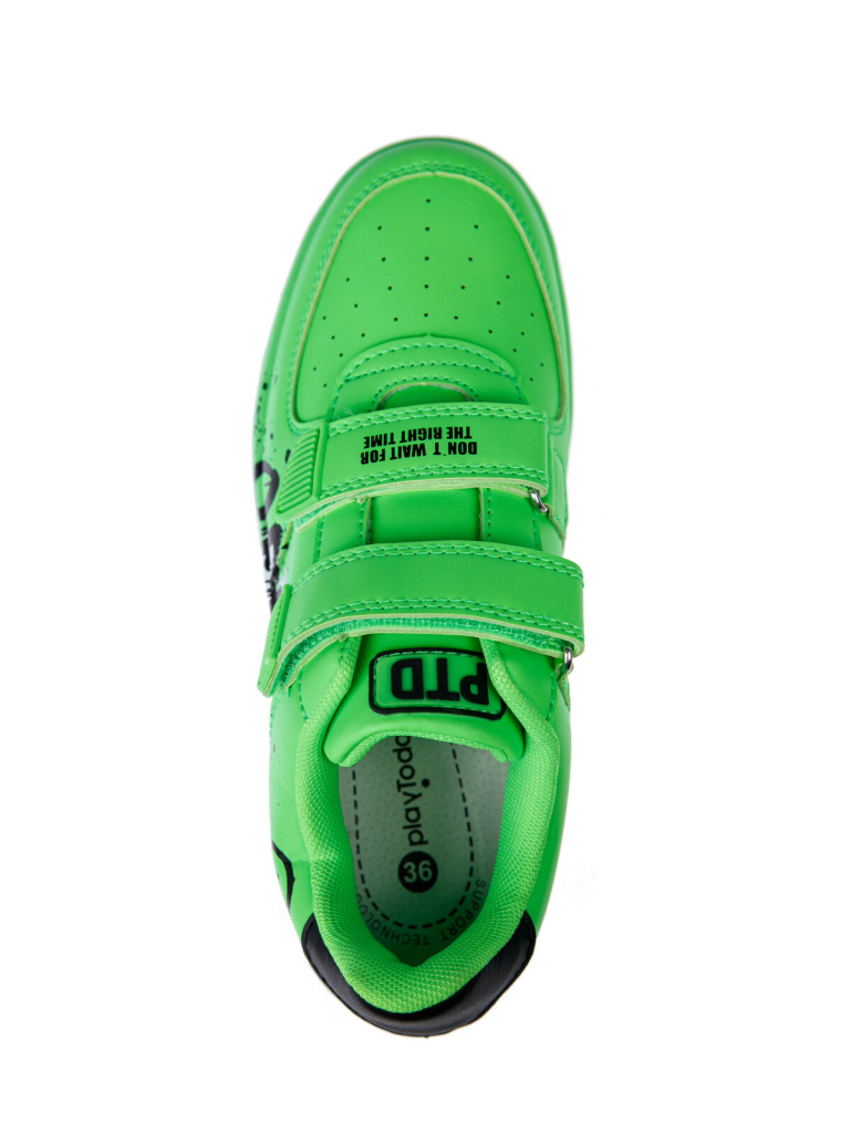 Кроссовки из искусственной кожи. Усиленная защита носка и пятки специальными материалами. Кожаная профилированная стелька с анатомической формой обеспечивает правильную нагрузку на стопу. Две липучки создают удобство при обувании. Эргономичная форма колодки обеспечивает правильное формирование стопы ребенка. Формоустойчивый задник поддерживает стопу в правильном положении. Подошва из резины не скользит и устойчива к истиранию.