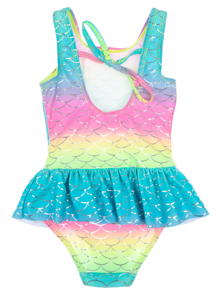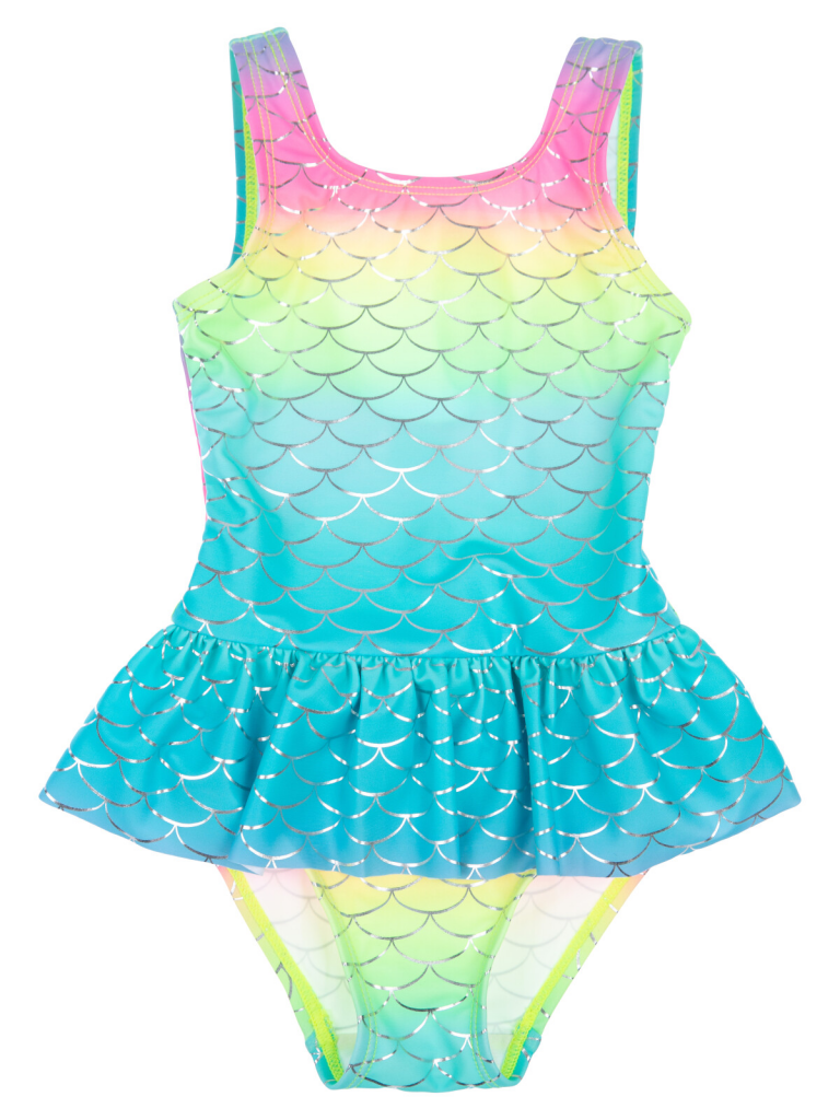 Слитный купальник для пляжа и бассейна. Комфортная посадка.Быстро сохнет и сохраняет первоначальный вид и форму даже при длительном использовании. Устойчивая к выгоранию ткань. Серебряное тиснение в виде чешуи. Подходит для плавания в бассейне.